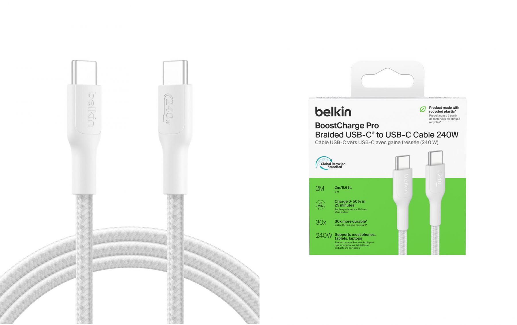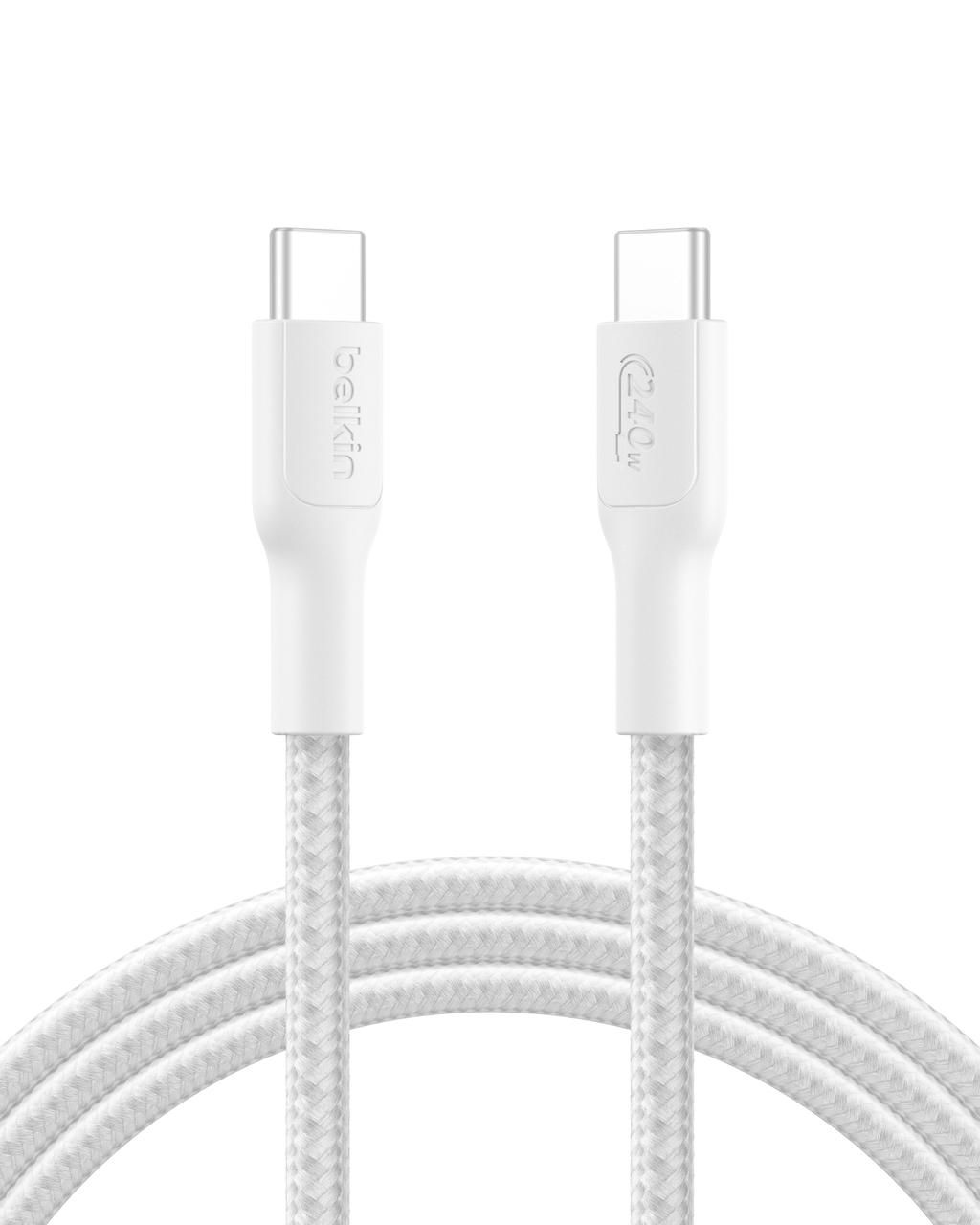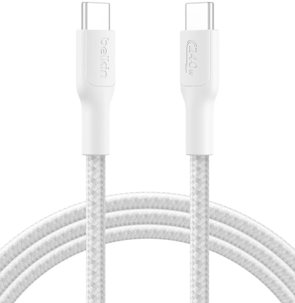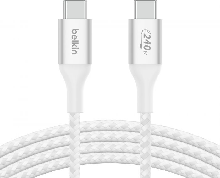 Кабель USB-C > USB-C заряджання/синхронізації Belkin 2м, 240Вт, Type-C, плетений, білий