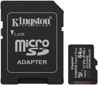 Карта пам'яті Kingston microSD 64GB C10 UHS-I A1 V10 R100MB/s + SD