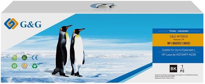 Картридж G&G 136Х (чорний) призначений для принтерів HP LaserJet M211/M212/M236. Його ресурс становить 2600 сторінок. Цей картридж від G&G є економічним та якісним замінником оригінальних картриджів, дотримуючись прав інтелектуальної власності виробників принтерів.
