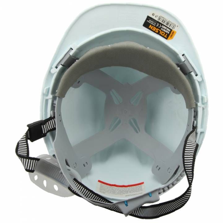 Захисна каска Tolsen забезпечує надійний захист голови під час виконання будівельно-монтажних, промислових або складських робіт. Виготовлена з ударостійкого пластику поліпропілену РР, має регульовану посадку та сумісна з додатковими засобами захисту, такими як щитки та навушники.