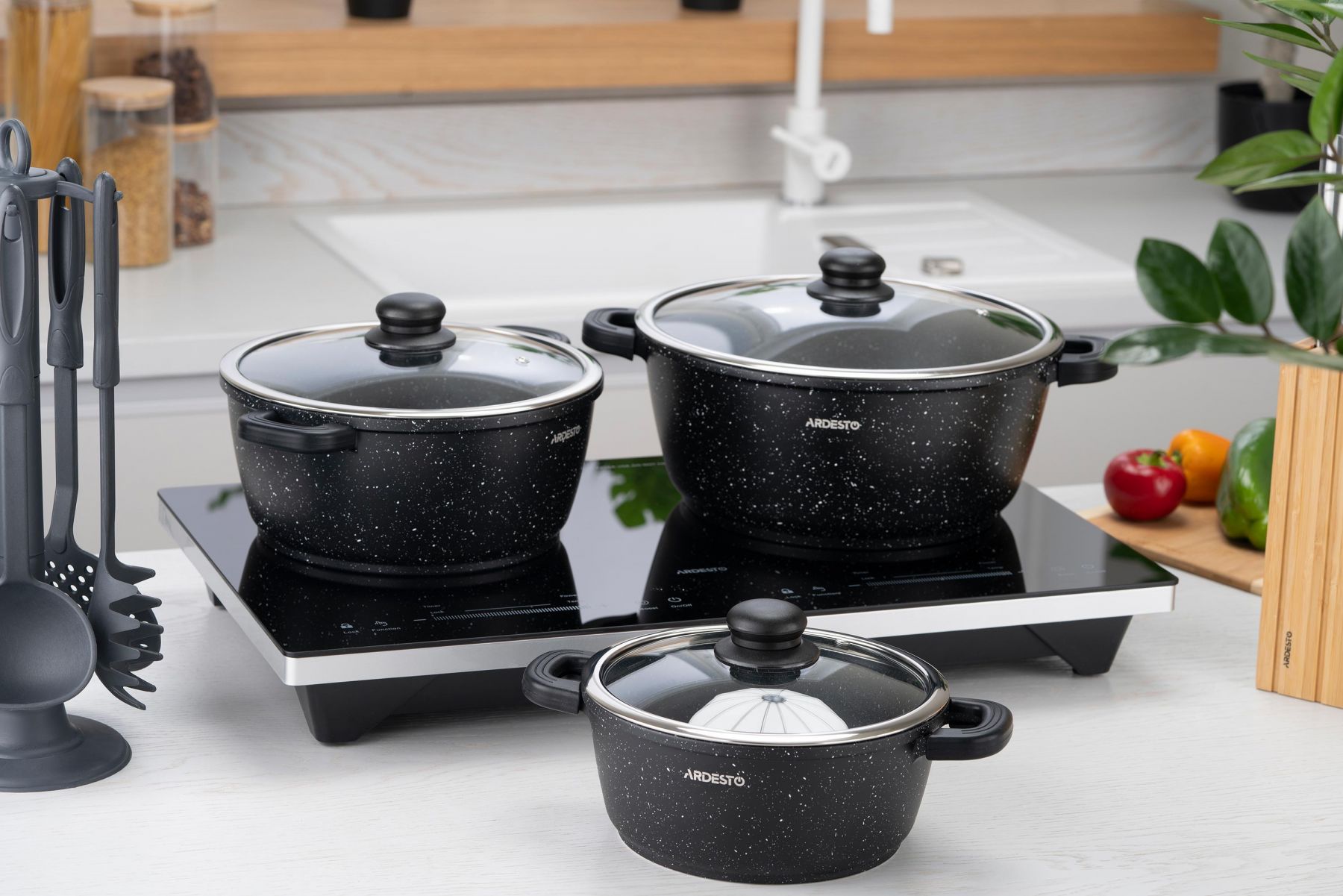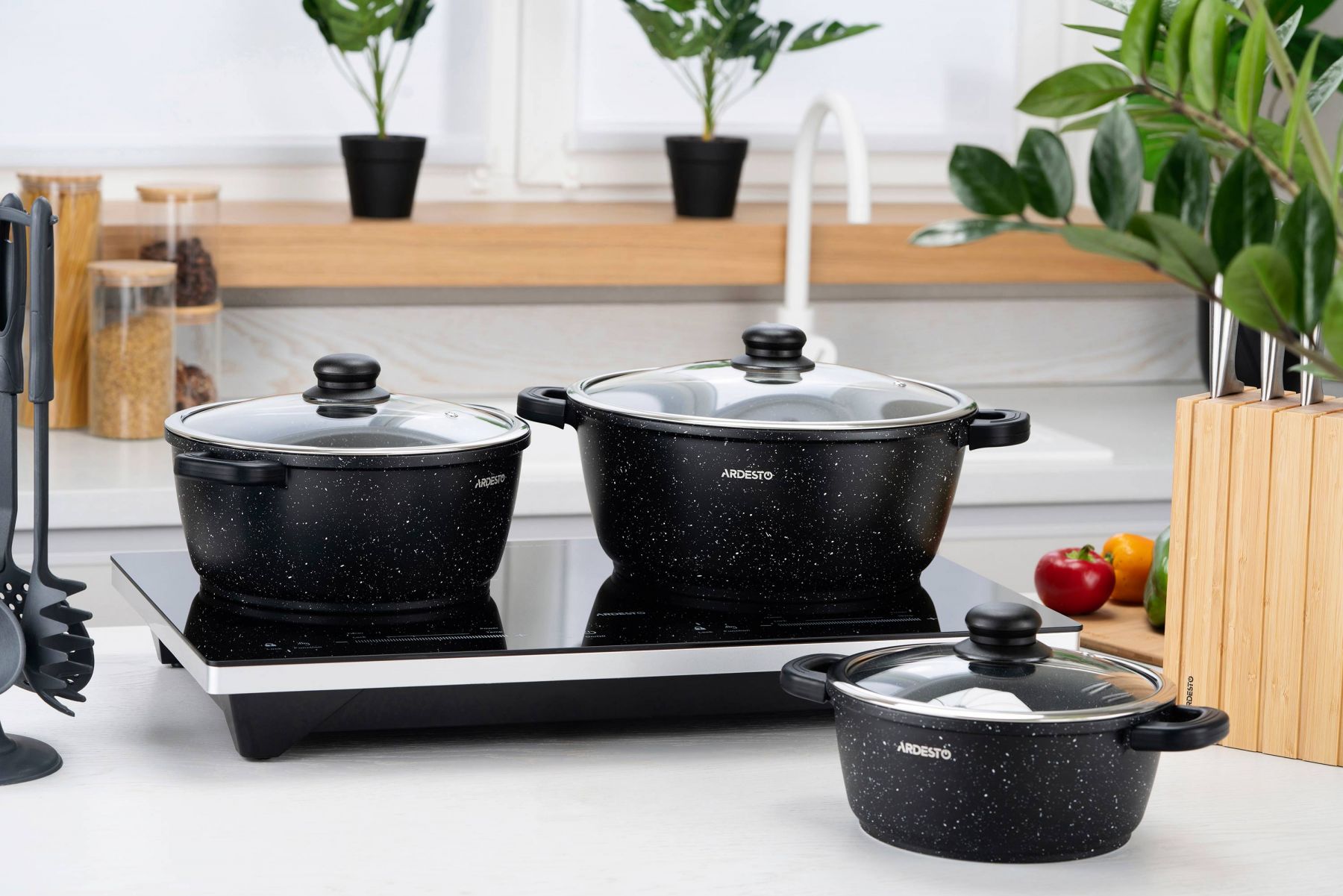 Каструля Ardesto Gemini Anzio, скляна кришка, 20 см, 2,5 л, чорний, алюміній