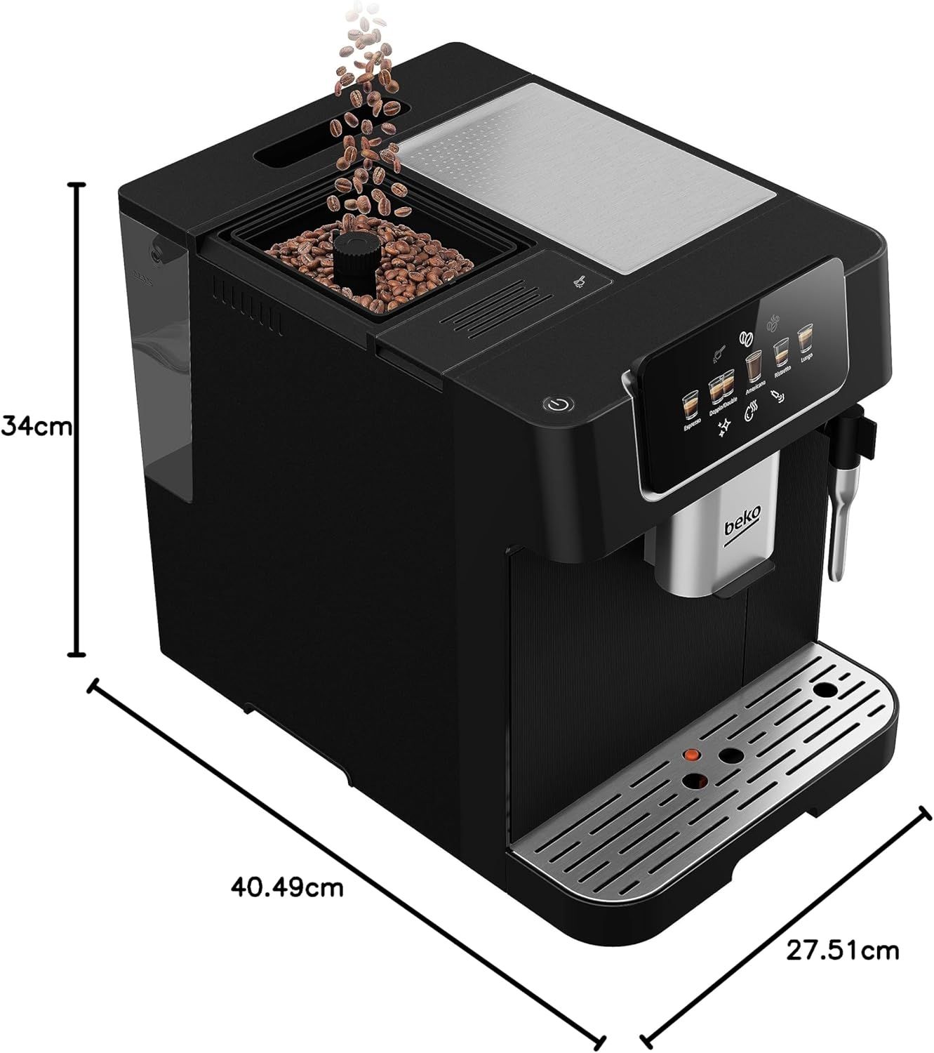 Кавомашина Beko 2.0л, зерно, ручний капучинатор, авторецептів - 5, чорний