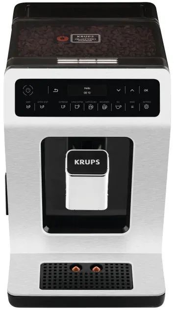 Особливості:зйомний піддон для крапель, регулювання ступеня помелу, Регулювання температури, регульована міцність кави, система KRUPS Quattro Force, знімний капучинатор, подача гарячої води для чаю, система One-Touch-Cappuccino, 3 режими температури, 3 ступені помелу кави, 3 міцності кави, можливість приготування 2х чашок еспресо