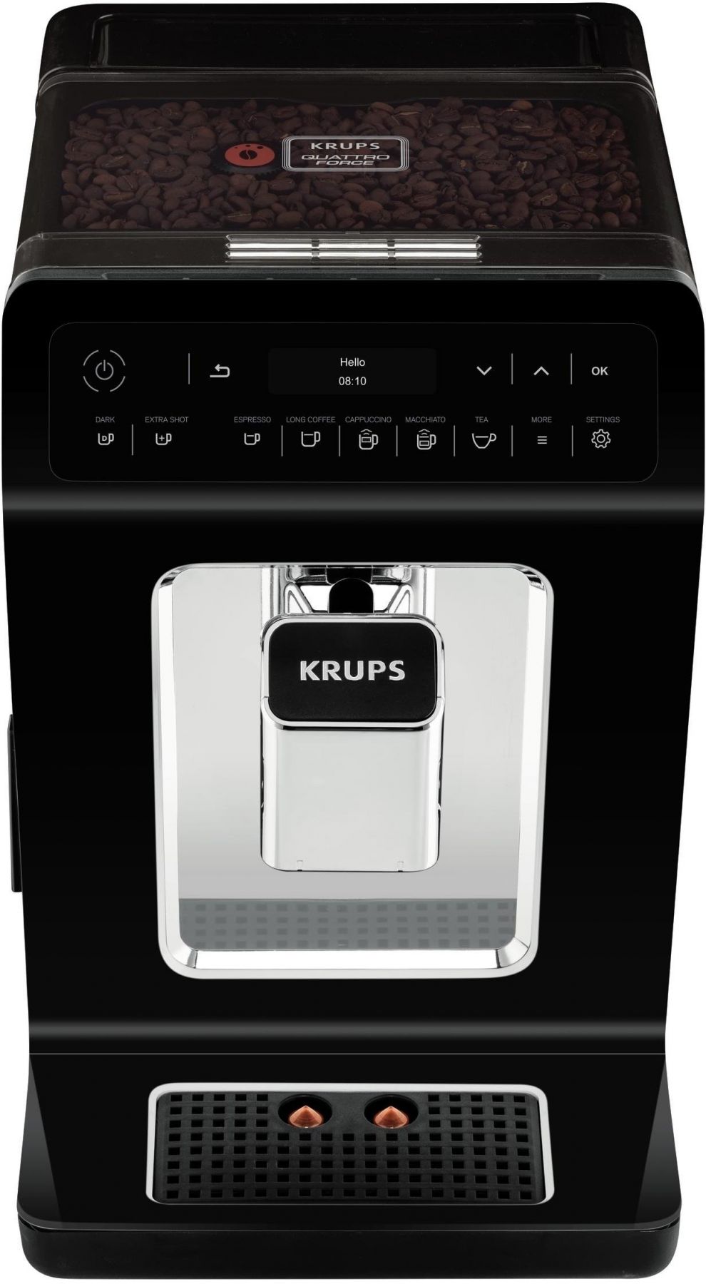 Особливості:зйомний піддон для крапель, система KRUPS Quattro Force, знімний капучинатор, подача гарячої води для чаю, система One-Touch-Cappuccino