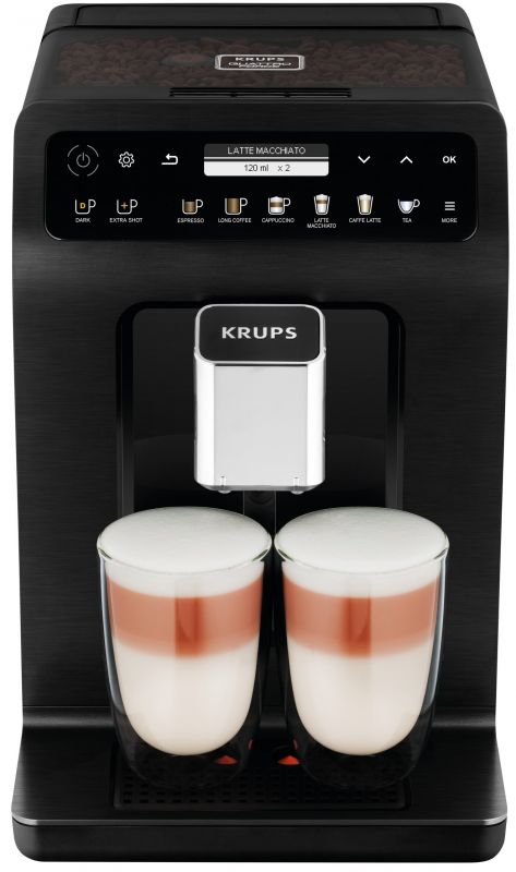 Особливості:регулювання ступеня помелу, протикраплинна система, регульована міцність кави, система KRUPS Quattro Force, система One-Touch-Cappuccino, індикація готовності до роботи, з ємністю для молока