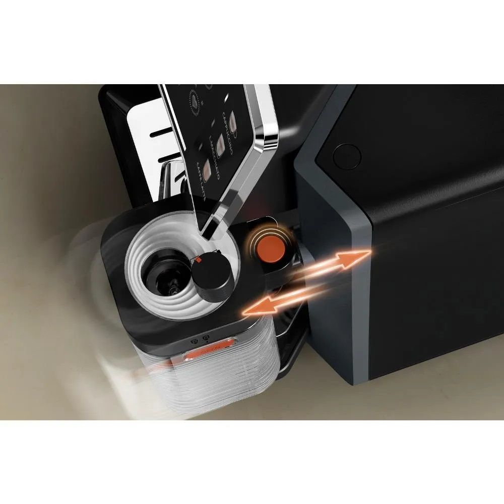 Особливості:детектор накипу, автоматичні програми промивання та очищення, 3 режими температури, 3 міцності кави, знімний зливний піддон, 2 чорних напої одночасно, 5 ступенів помелу кавових зерен, кількісна кастомізація, 1 молочний напій за раз