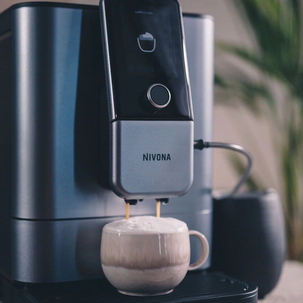 Особливості:регулювання ступеня помелу, регулювання жорсткості води, вбудований Bluetooth з функцією дистанційного керування через програму NIVONA, регулювання температури кави, регулювання міцності кави, тихий конічний млин з нержавіючої сталі, індивідуальні налаштування "Моя кава", автоматичний індикатор очищення від накипу, автоматична програма очищення кавамашини, регулювання кількості кави і молока, функція подачі гарячої води для чаю, регулювання розміру порції меленої кави