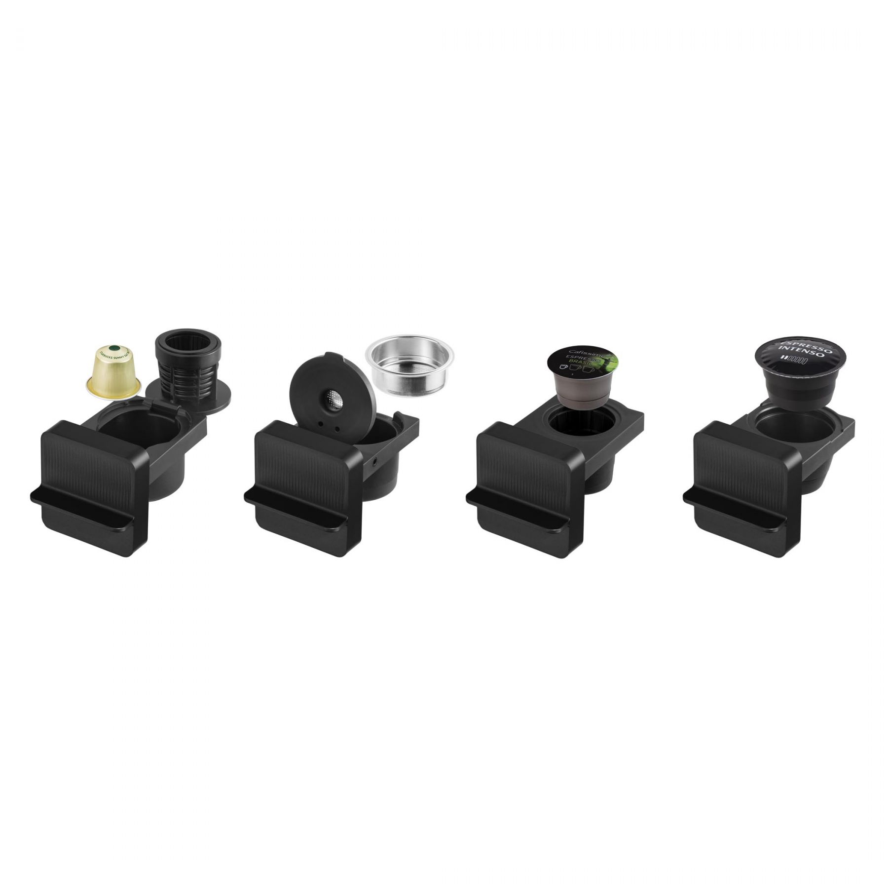 Особливості:автоматичний капучинатор, 3 адаптери для більшості звичайних кавових капсул, 3 розміри чашки, перехідник для меленої кави