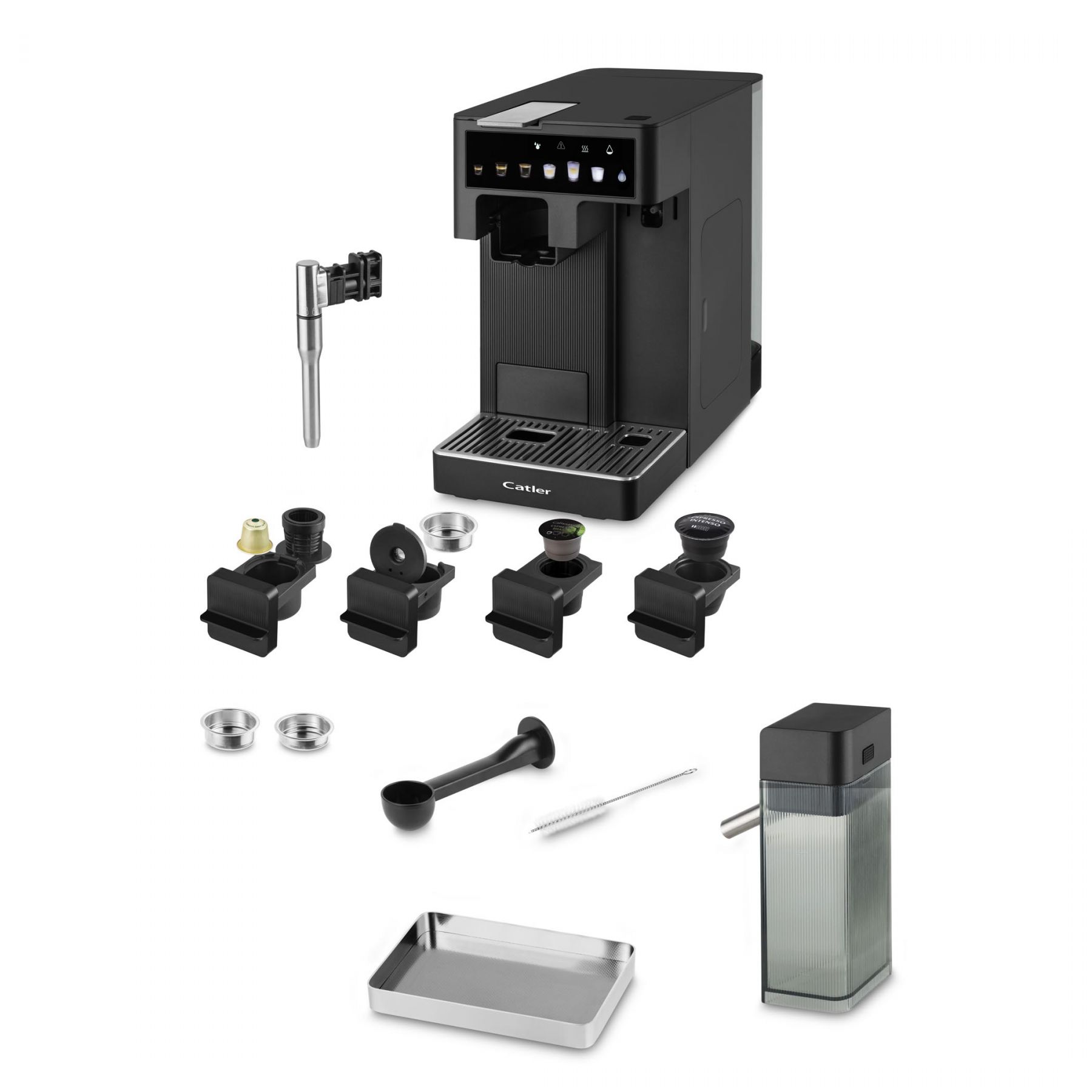 Кавоварка Catler капсульна Renzo 1.6л, капсули, мелена кава, сенсорне керування, автоматичний капучинатор, чорний