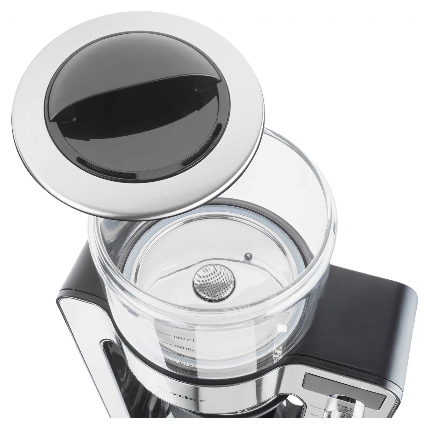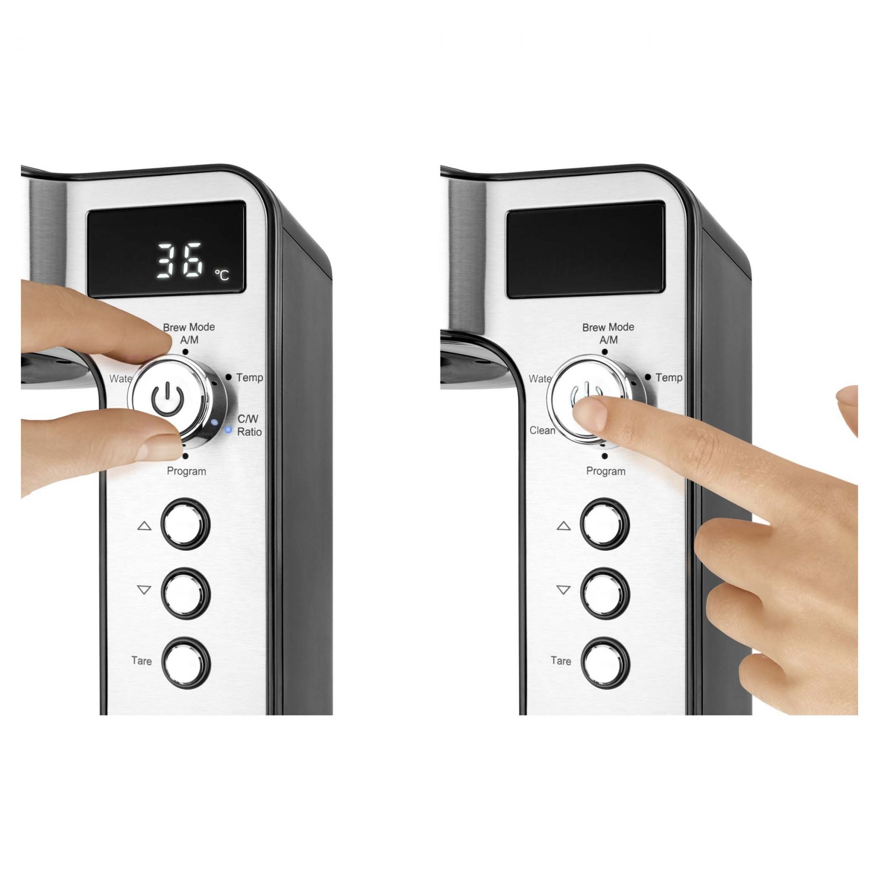 Функції:функція відкладеного старту, видалення накипу, вбудовані ваги, автоматична програма, регульована температура води від 80 до 98 °C, відкладений старт