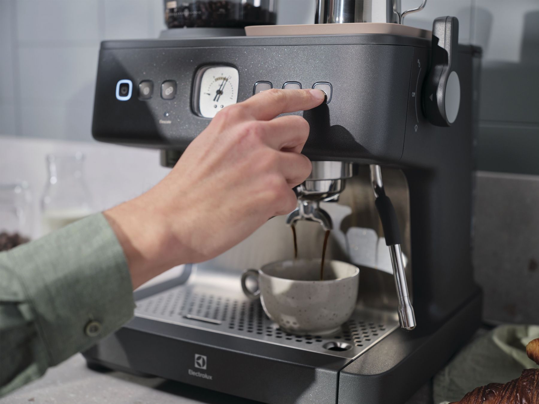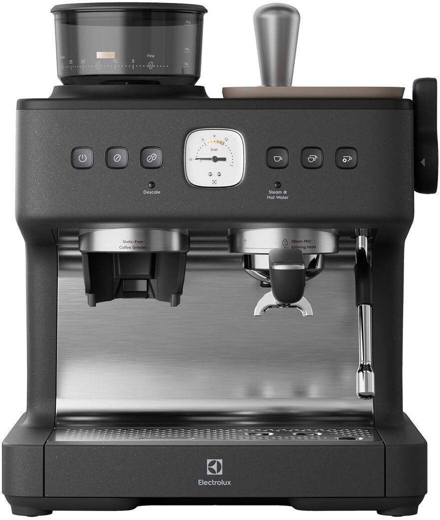 Ріжкова кавоварка Electrolux E8EC1-8BP з резервуаром на 3 л і тиском 20 бар ідеально підходить для приготування еспресо, капучино та інших напоїв у домашніх умовах. Оснащена професійним темпером 58 мм, вбудованою кавомолкою з 30 рівнями помелу, повнорозмірним спінювачем молока та інтуїтивною панеллю керування. Має потужність 2200 Вт та корпус із нержавіючої сталі.