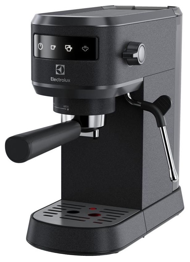 Кавоварка Electrolux рожкова, 1л, мелена, ручний капуч, LED-дисплей, підігрів чашок, чорний