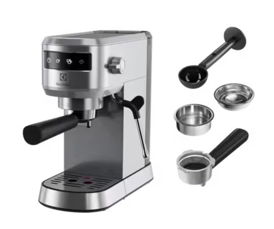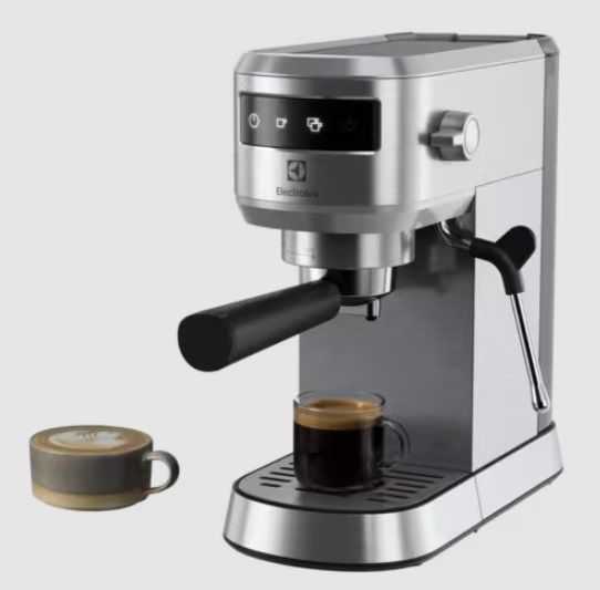 Кавоварка Electrolux рожкова, 1л, мелена, ручний капуч, LED-дисплей, підігрів чашок, нерж
