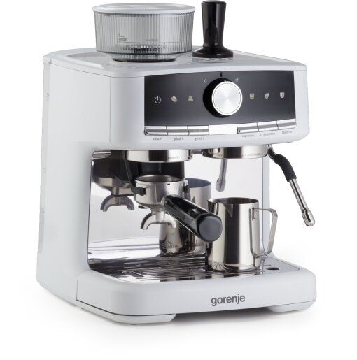 Кавоварка Gorenje ріжкова 2.5л, кавомолка 0,25л, капучинатор, кнопочне керування, білий