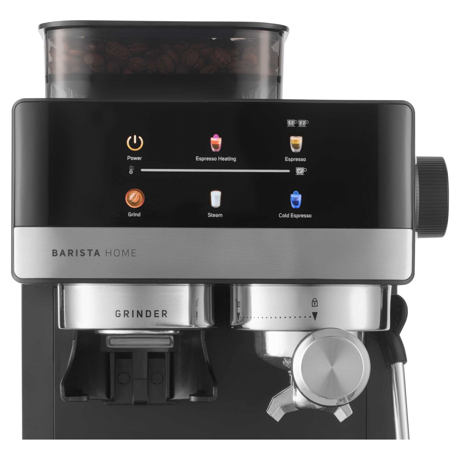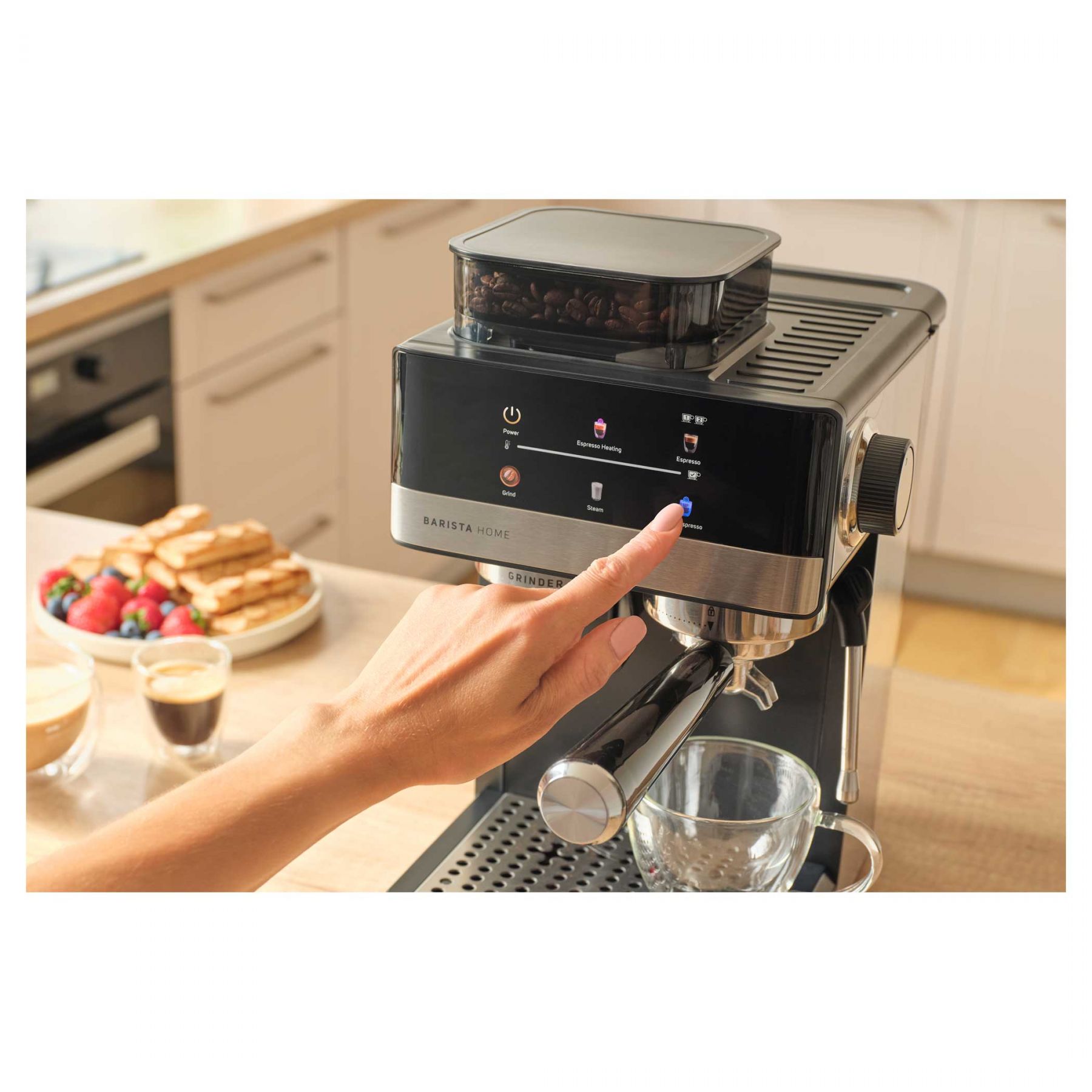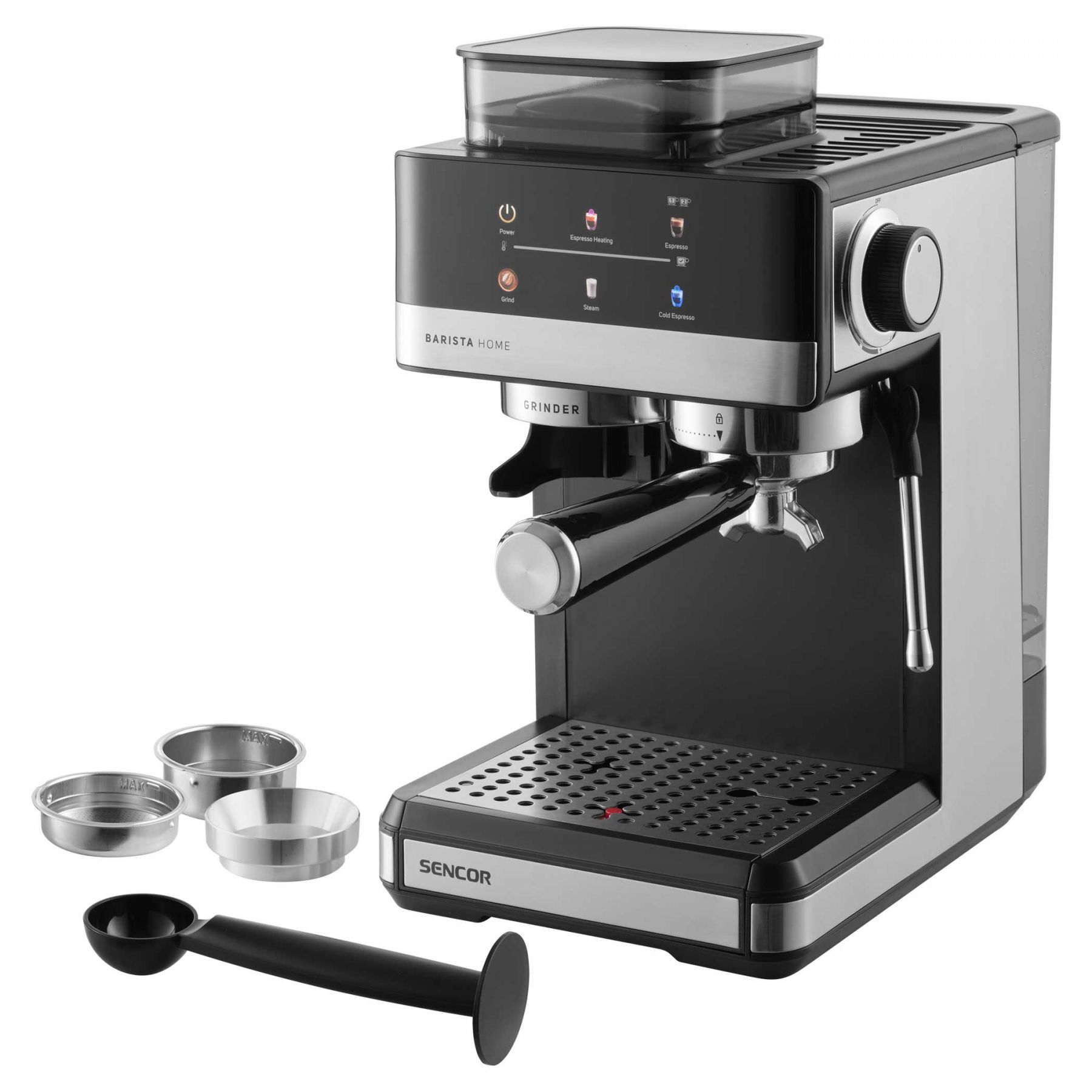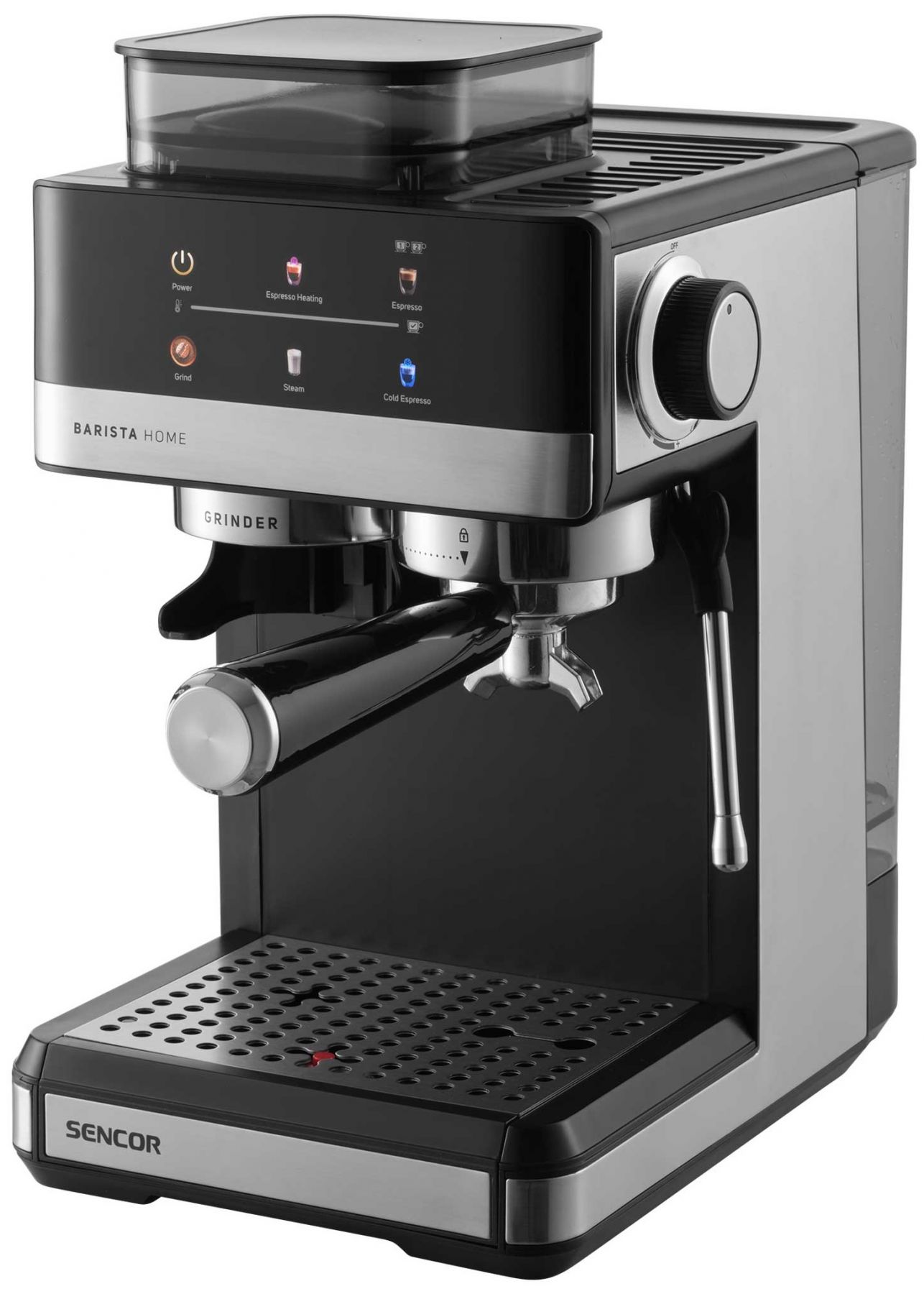 Кавоварка Sencor ріжкова 1.8л, зерно+мелена, вдубована кавомолка, дисплей, нерж. сталь-чорний