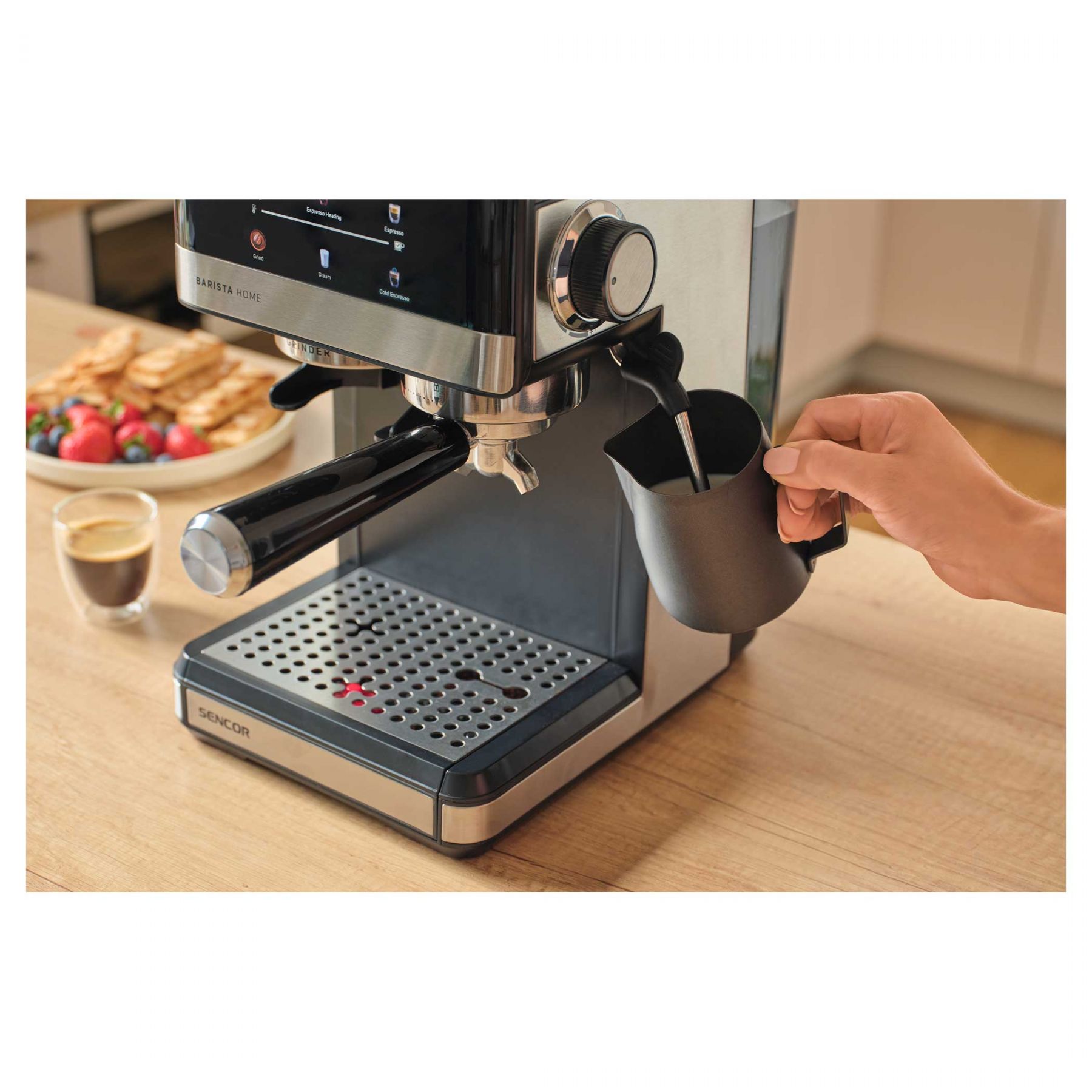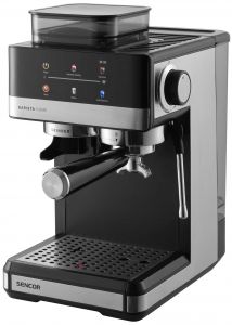 Кавоварка Sencor створена для приготування еспресо з меленої або зернової кави завдяки вбудованій металевій кавомолці. Система Thermoblock забезпечує стабільну температуру, а тиск 20 бар сприяє насиченому смаку напою. Сенсорний дисплей із кольоровими піктограмами полегшує керування режимами. Модель оснащена підігрівачем чашок, обертовою паровою насадкою та автоматичним вимкненням.