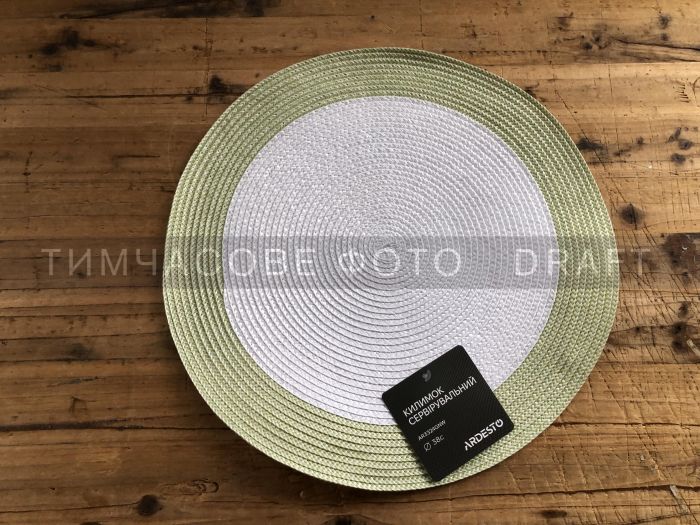 Килимок сервірувальний Ardesto 38см, поліпропілен, кругла, біло-зелений