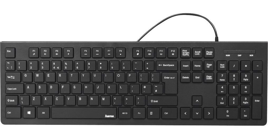 Базова клавіатура Hama KC-200 – повноформатна клавіатура, що забезпечує звичний стандарт повнорозмірної клавіатури. Захист від бризок води завдяки відводу рідини. Регулювання нахилу дозволяє зручно розташуватись. Керування мультимедійними функціями одним дотиком через повторне призначення Fn-клавіш - немає необхідності копатися в системних налаштуваннях. Швидке, легке очищення та комфортний набір тексту завдяки плоским, індивідуально рознесеним клавішам.
