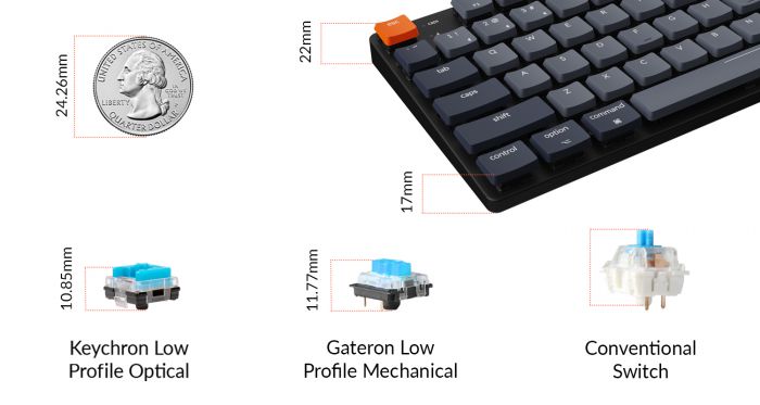 K1 SE – ультратонка бездротова механічна TKL-клавіатура спроектована з посиленим алюмінієвим верхнім корпусом та пластиковим нижнім корпусом. Підключення Bluetooth 5.1 забезпечує бездоганний зв'язок у будь-якому місці. Клавіатура також укомплектована кабелем типу C для оптимального підключення та сумісності з усіма пристроями. K1 SE може підключатися до трьох пристроїв через Bluetooth і сумісний з пристроями Mac, Android і Windows.