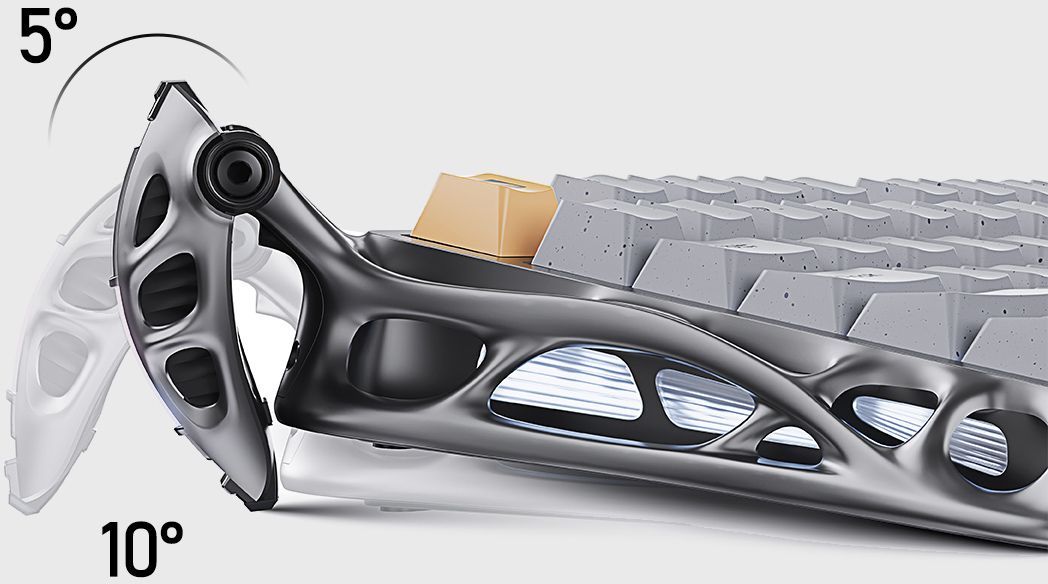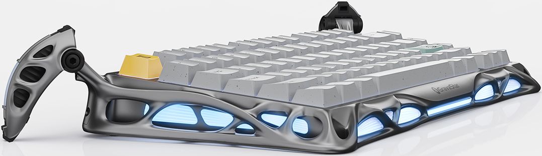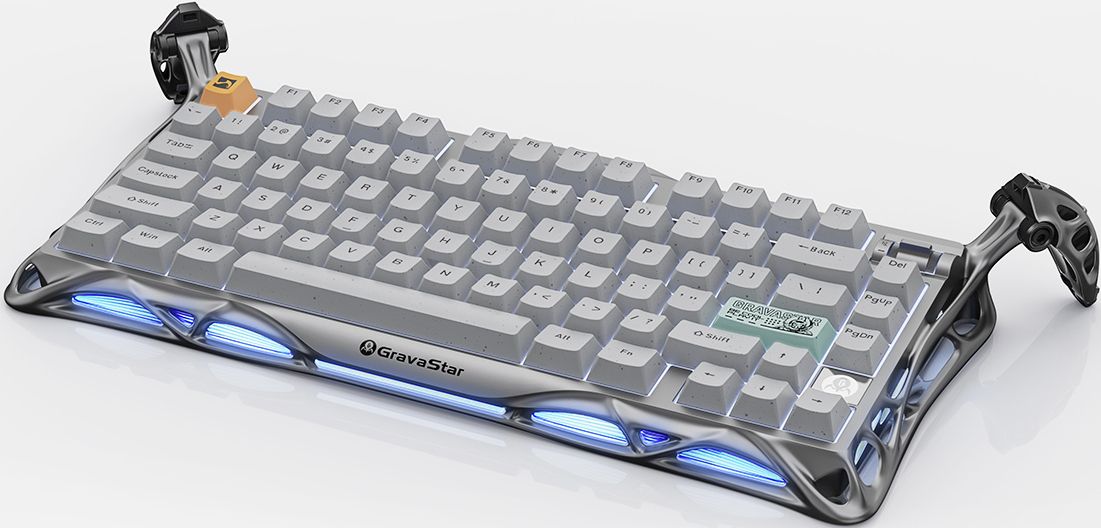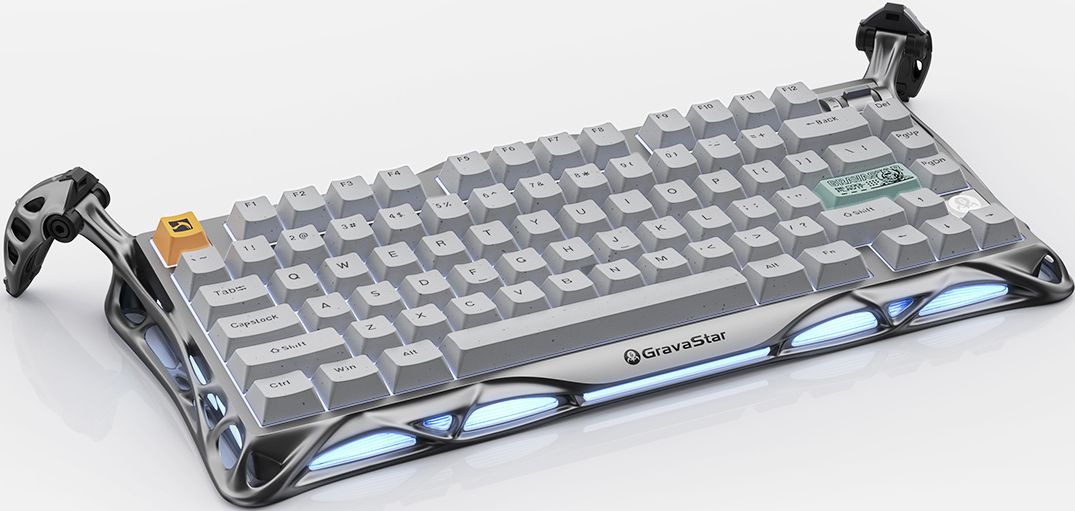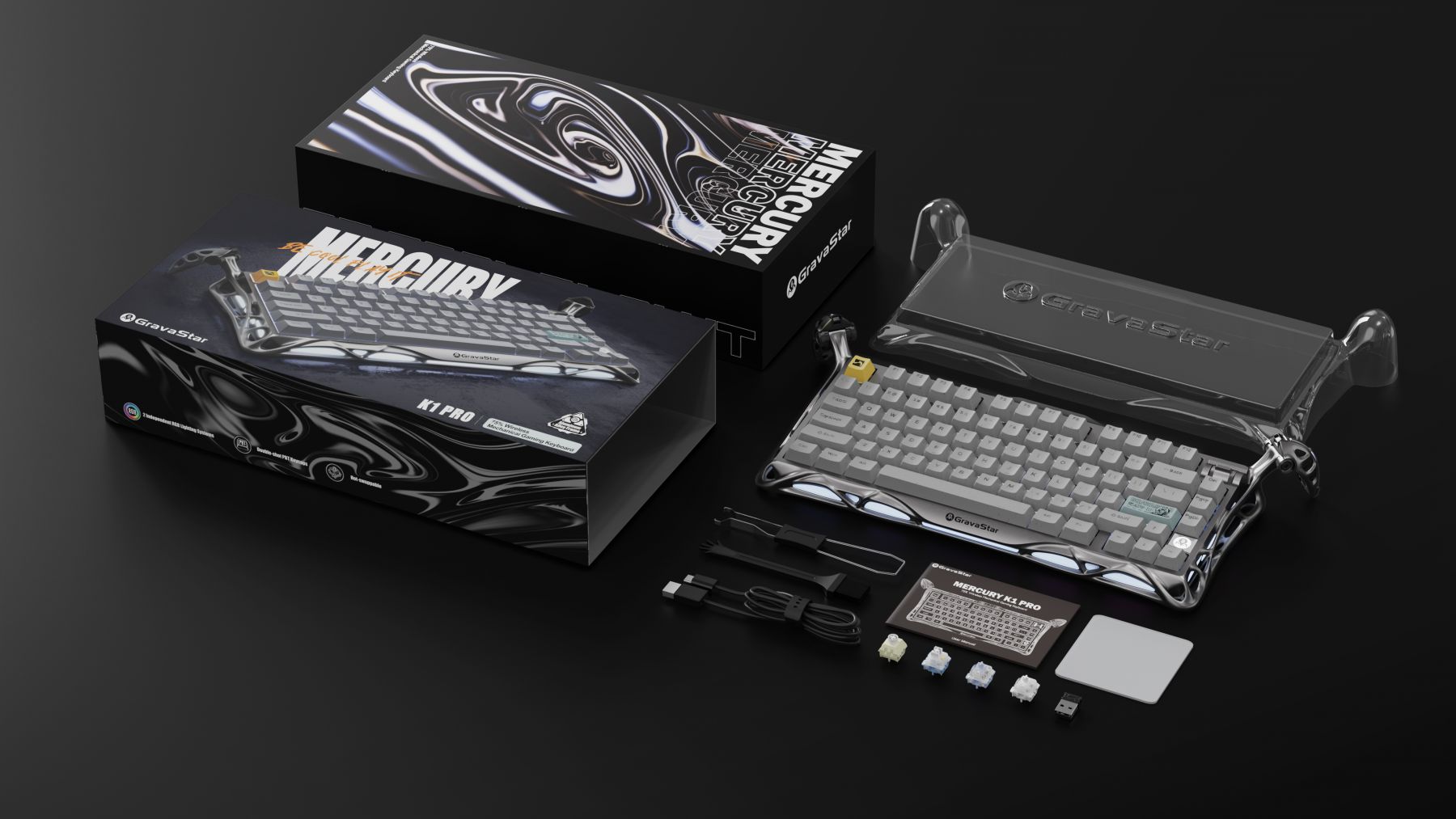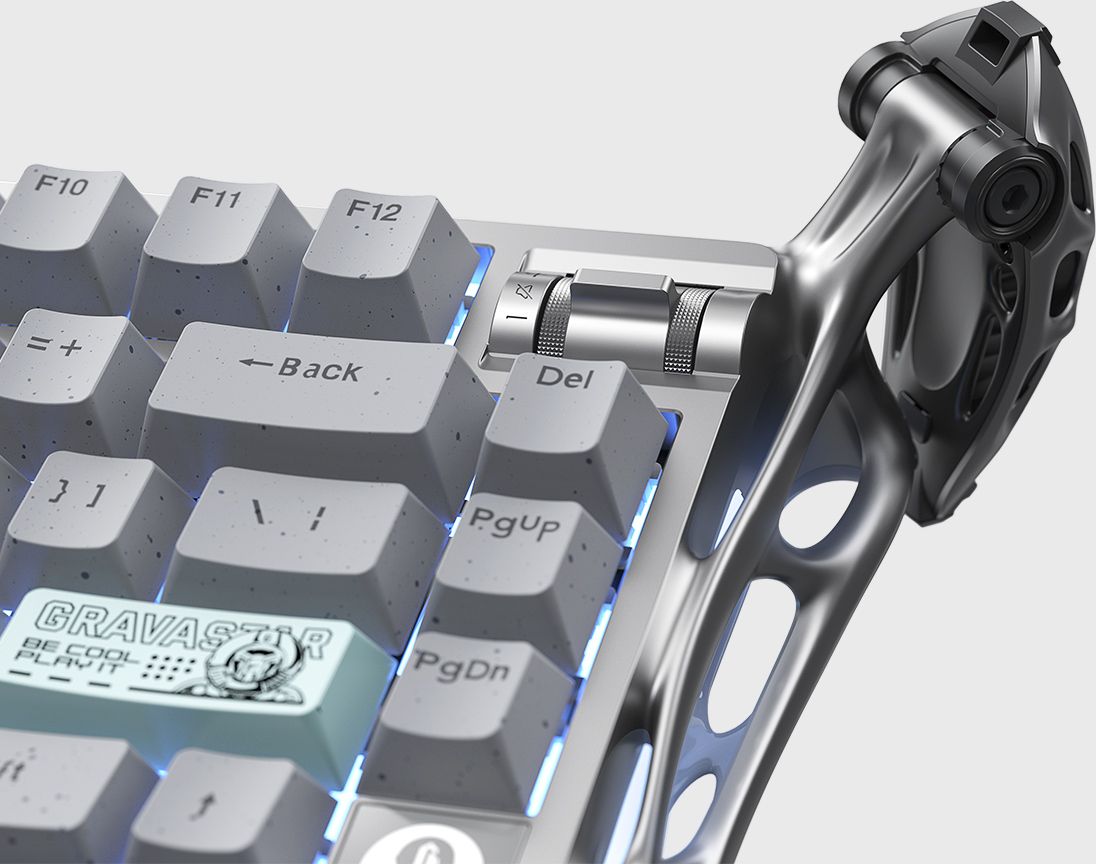 GravaStar Mercury K1 Pro – унікальна механічна клавіатура 75 % у стильному бетонно‑сірому дизайні із вбудованими “павуковими” ніжками, міцним алюмінієвим корпусом та гармонійною RGB‑підсвіткою