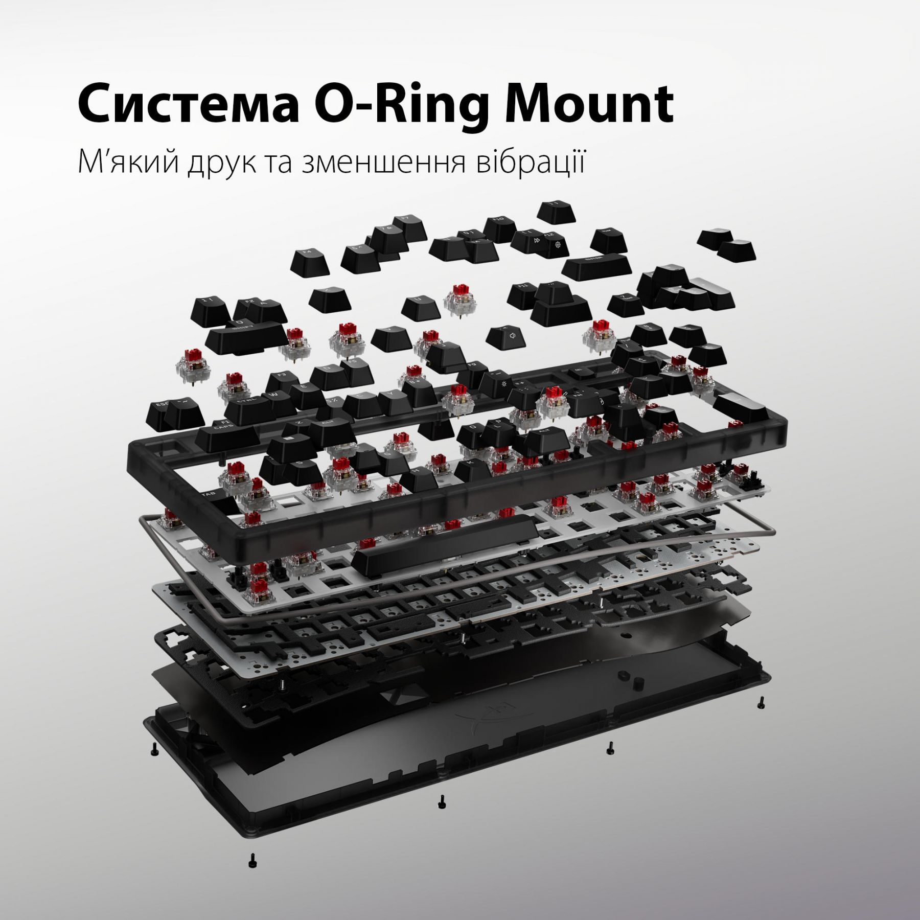 Механічна клавіатура HyperX Alloy Origins 2 1800 поєднує розширений функціонал і компактніше компонування у форматі 1800. Підтримка hot-swap дозволяє змінювати перемикачі без пайки та адаптувати відчуття під різні сценарії. Лінійні перемикачі HyperX Red забезпечують плавний хід і стабільність до 80 млн натискань. Частота опитування до 8000 Гц мінімізує затримку введення. Конструкція з O-ring та полікарбонатною пластиною знижує вібрації та шум.