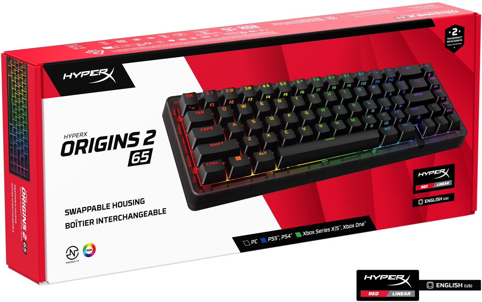Клавіатура механічна HyperX Alloy Origins 2 65key, Red, USB-A, Hot-Swap, EN/UA, RGB, чорний