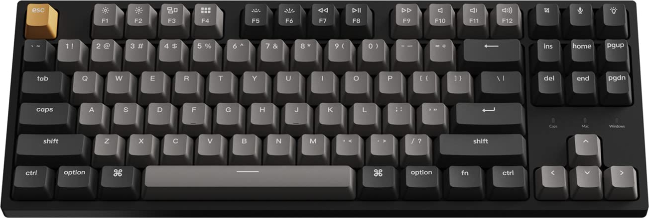 Keychron C1 Pro — це дротова механічна клавіатура у форматі TKL (80%), яка поєднує преміум-функції, такі як підтримка QMK/VIA, PBT-клавіші, RGB-підсвічування, гаряча заміна перемикачів та частота опитування 1000 Гц. Це ідеальне рішення для роботи, ігор та індивідуального налаштування.