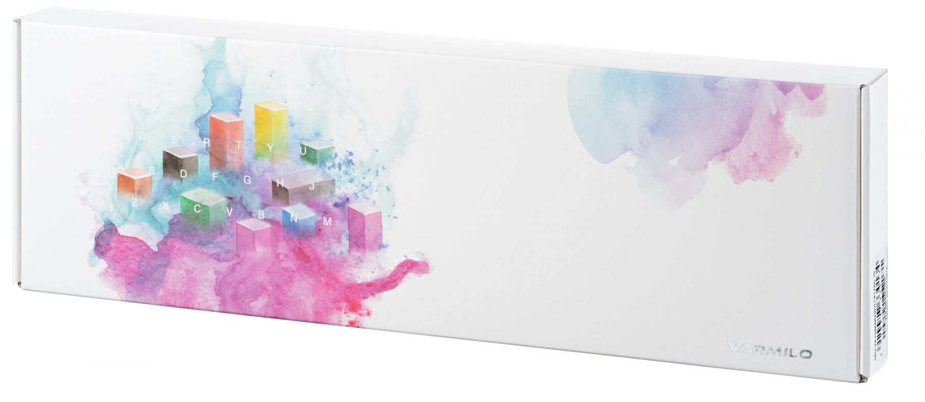Varmilo CMYK – це класична і водночас ефектна механічна клавіатура, оснащена яскравими клавішами, які створюють унікальну дизайнерську філософію пристрою. Основний колір моделі CMYK – холодний білий, який плавно переходить у сірий, а головну візуальну стилістику пристрою створюють яскраві клавішні ковпачки у жовтому, рожевому, фіолетовому, помаранчевому та блакитному кольорах. Справжній арт-дизайн у сучасних технологіях.