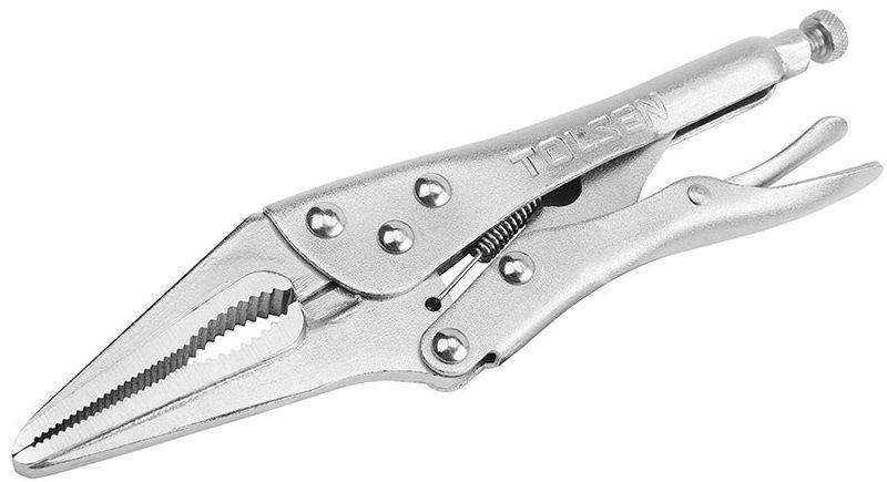 Кліщі затискні Tolsen довжиною 230 мм з максимальним розкриттям 0-65 мм забезпечують точне затискання завдяки храповому механізму та прямим подовженим губкам. Виготовлені зі спеціальної кованої інструментальної сталі з нікельованим покриттям для тривалого використання.