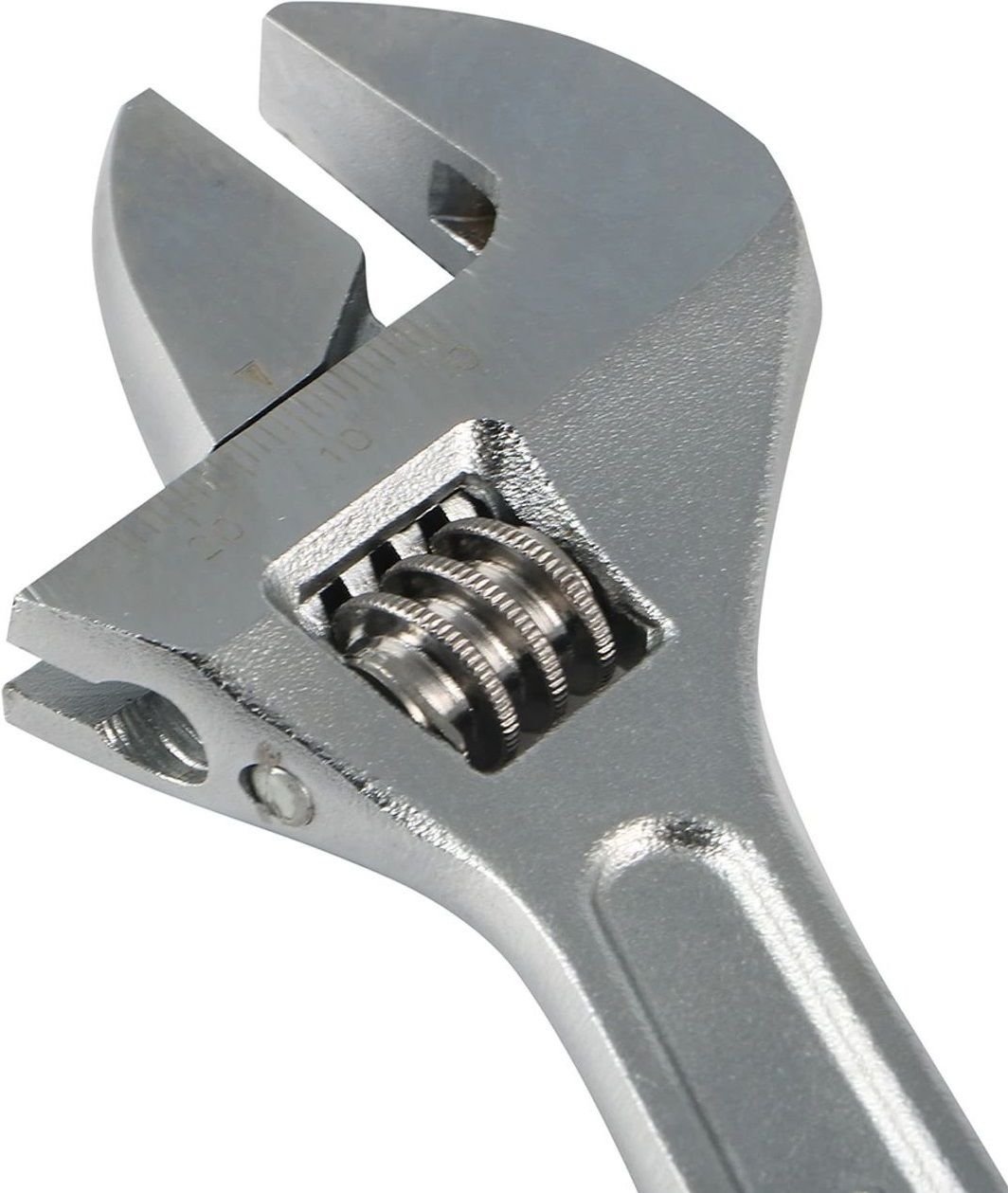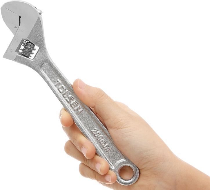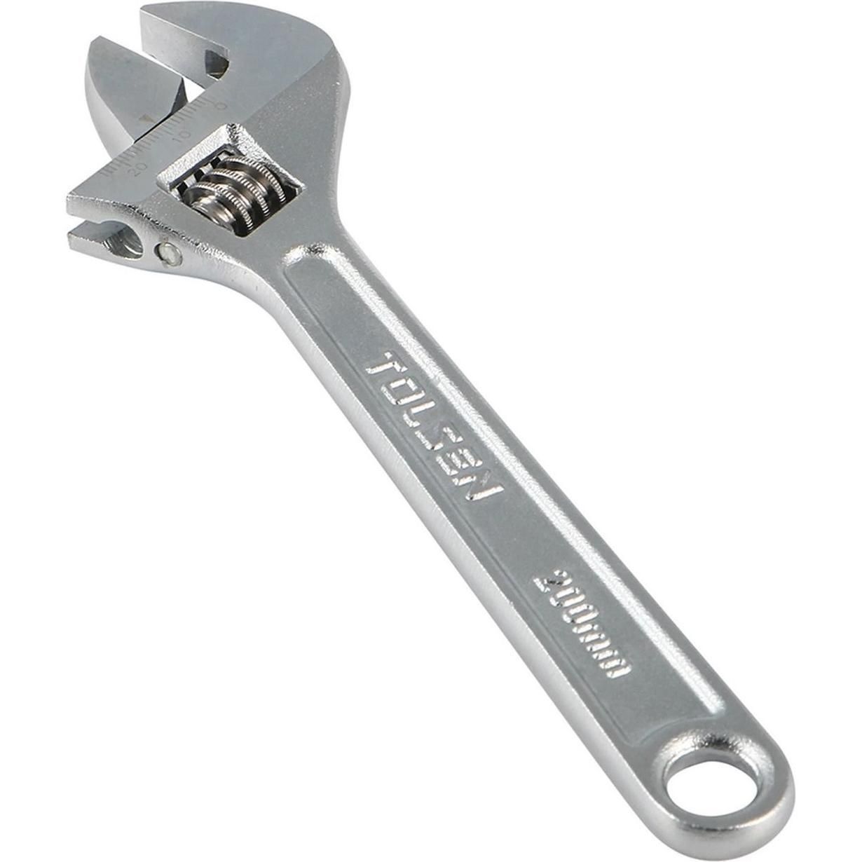 Розвідний ключ Tolsen 200 мм із робочим діапазоном 0–24 мм виготовлений із хромованадієвої сталі (CrV) та призначений для зручного затягування і відкручування кріплень різного розміру.