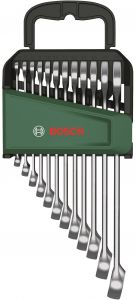 Набір комбінованих гайкових ключів Bosch із 12 предметів - незамінний багатофункціональний інструмент для численних робіт із ремонту та технічного обслуговування для майстрів-аматорів. Ці комбіновані ріжкові та накидні ключі надзвичайно універсальні для всіх видів робіт, навіть у важкодоступних місцях. Цей набір включає розміри: 6, 7, 8, 9, 10, 11, 12, 13, 14, 15, 17, 19.