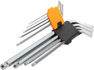 Комплект з 9-ти подовжених шестигранних закруглених ключів Tolsen різного розміру призначений для закручування/відкручування кріпильних елементів (гвинтів, гайок, шурупів) з внутрішнім шестигранником в перетині. Підходить для майстрів будь-якої галузі.