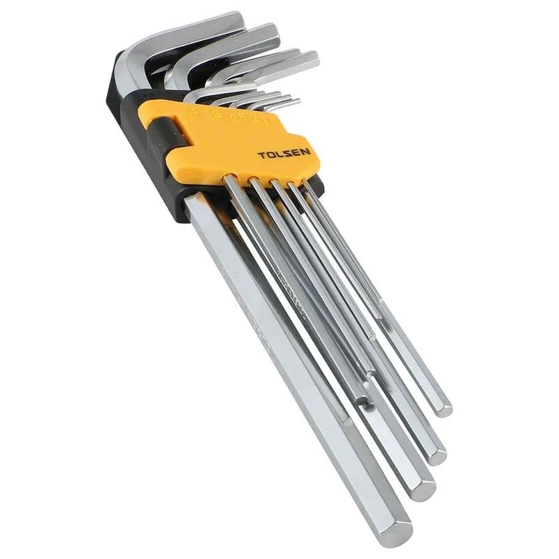 Шестигранні ключі Tolsen призначені для закручування/відкручування кріпильних елементів (гвинтів, гайок, шурупів) з внутрішнім шестигранником в перетині. Комплект з 9-ти однотипних ключів різного розміру підходить для використання майстрами в будь-якій галузі.