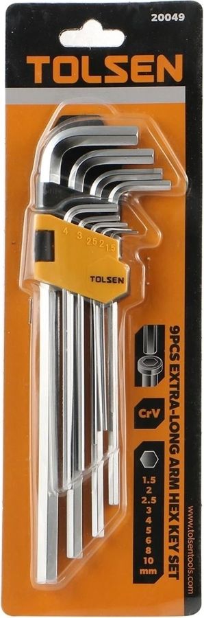 Ключі шестигранні Tolsen, набір 9шт, подовжені, довгі, кулястий наконечник, 1.5-10мм, CrV