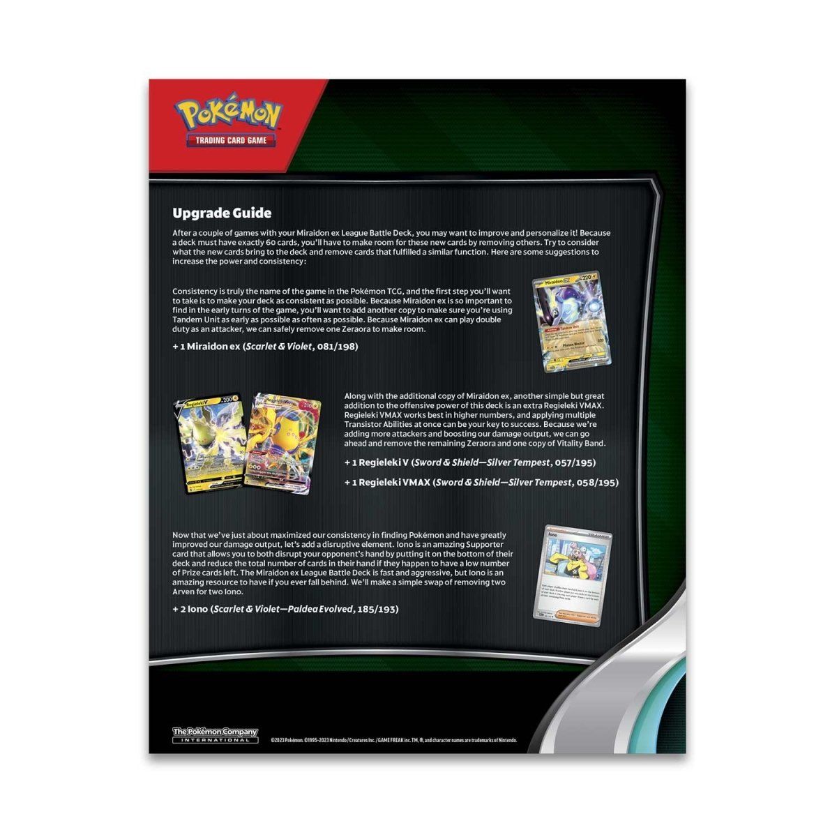Колекційна карткова гра Pokémon TCG: Miraidon ex League Battle Deck — це готова колода з 60 карт, побудована навколо легендарного Miraidon ex. Містить фольговані та ключові карти, аксесуари й усе необхідне для гри офлайн або онлайн.