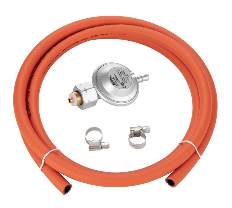Цей комплект призначений для підключення газового балона (рекомендуємо вибухобезпечні композитні балони Hexagon Ragasco) до обладнання, яке не укомплектоване редуктором та шлангом. Підходить для газових плиток та плит, печей, грилів та інших газових пристроїв, у яких використовується пропускна здатність 1.5 кг/год.