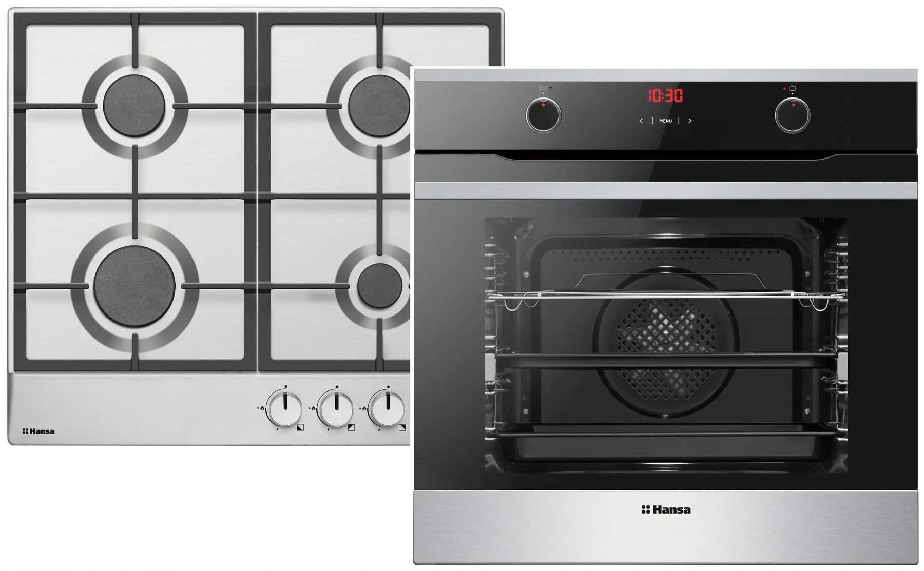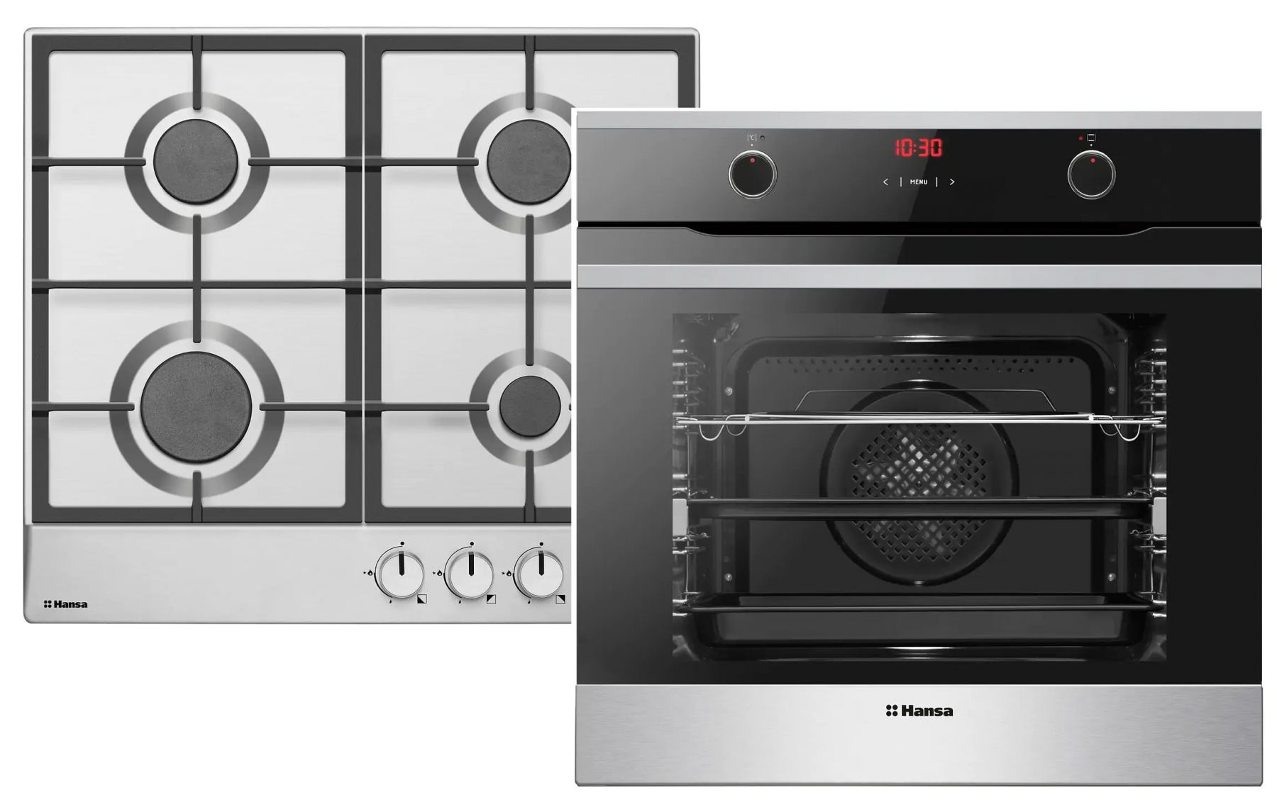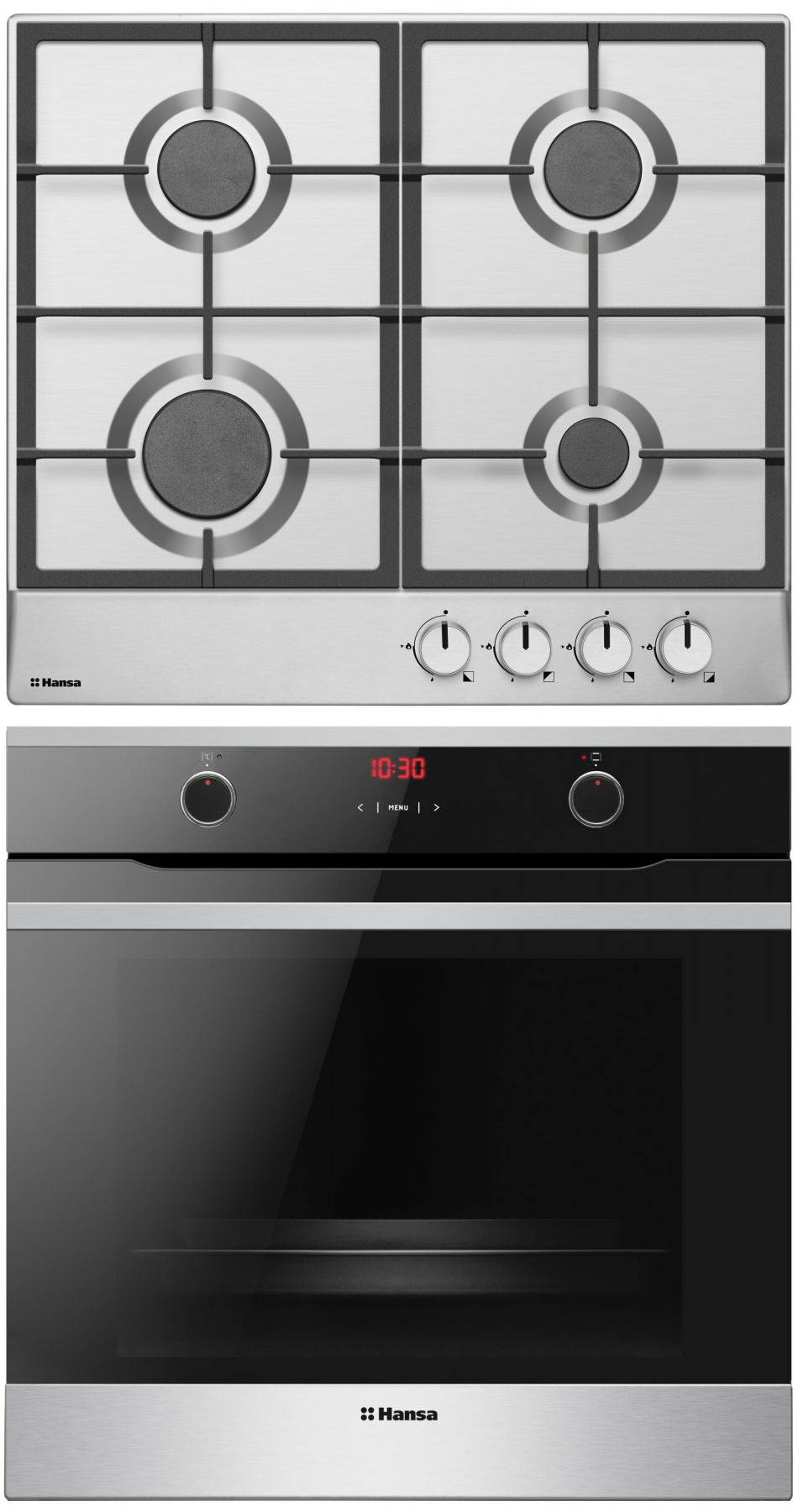 Комплект Hansa (духовка електрична + поверхня газова), чорний+нерж