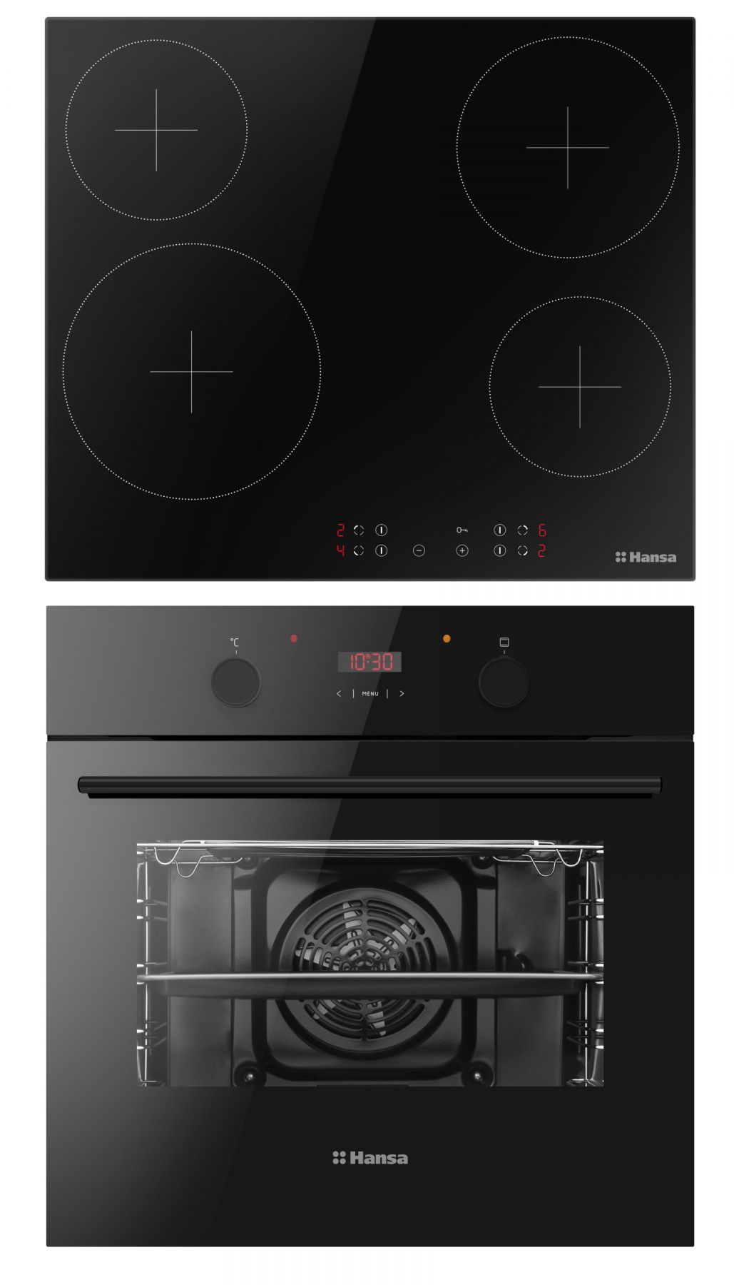 Комплект Hansa (духовка електрична + поверхня склокерамічна), чорний