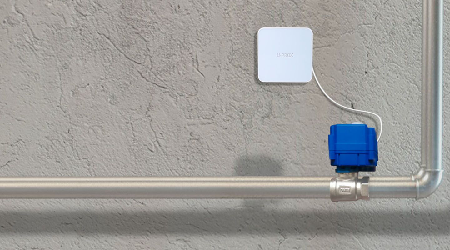 U-Prox Valve DN20 – бездротовий електропривід для керування кульовим клапаном DN20. Забезпечує автоматичне перекриття або відкриття водопостачання за сигналом системи безпеки або протікання. Працює від зовнішнього живлення та має резервне живлення для автономної роботи. Надійний у використанні, підтримує ручне управління і виявлення несправностей.