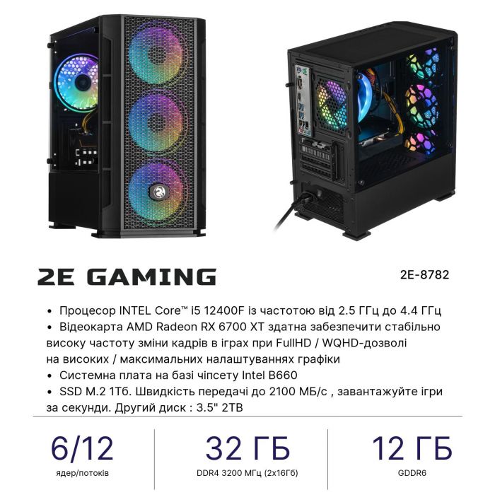 Комп’ютер персональний 2E Complex Gaming Intel i5-12400F/B660/32/1000F+2000/RX6700XT-12/FreeDos/GB700/750W
