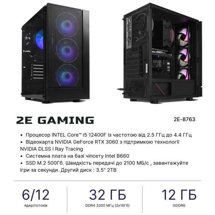Комп’ютер персональний 2E Complex Gaming Intel i5-12400F/B660/32/500F+2000/NVD3060-12/Win11H/2E-G3301/700W