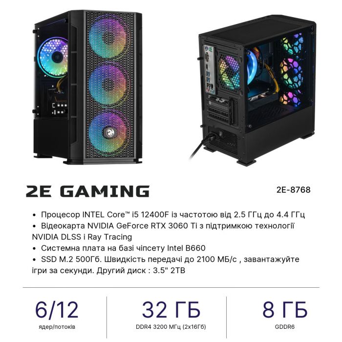 Комп’ютер персональний 2E Complex Gaming Intel i5-12400F/B660/32/500F+2000/NVD3060TI-8/FreeDos/GB700/700W