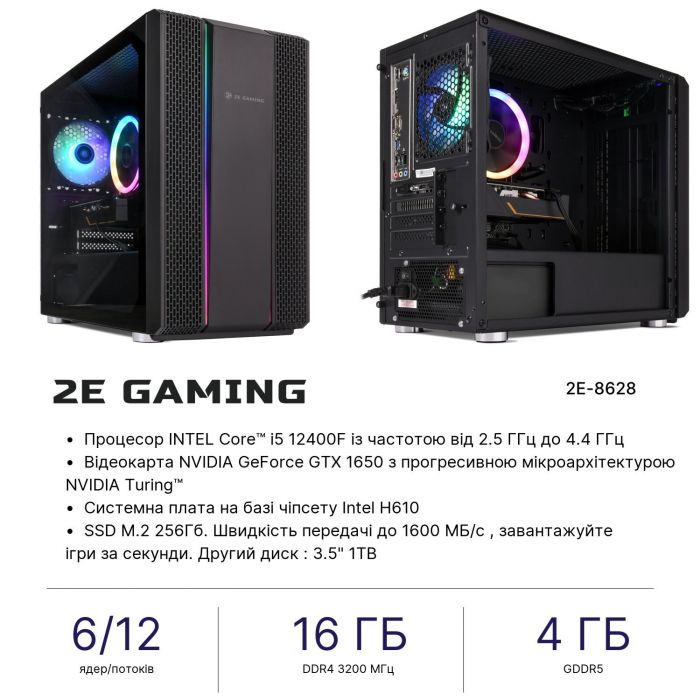 Комп’ютер персональний 2E Complex Gaming Intel i5-12400F/H610/16/256F+1000/NVD1650-4/FreeDos/2E-GM3/500W
