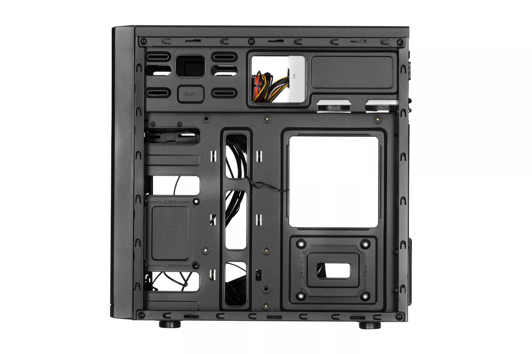 Порти на передній панелі:2x USB 2.0, Power, Reset, HD Audio+MIC, Power LED, HDD LED