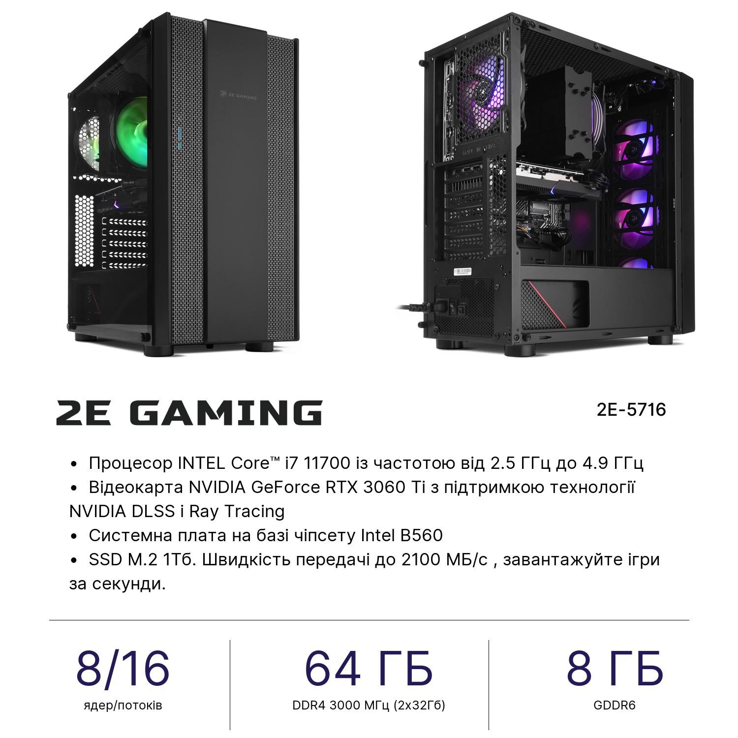 Комп’ютер персональний 2E Real Intel i7-11700/B560/64/1000F/NVD3060TI-8/FreeDos/G3403/650W