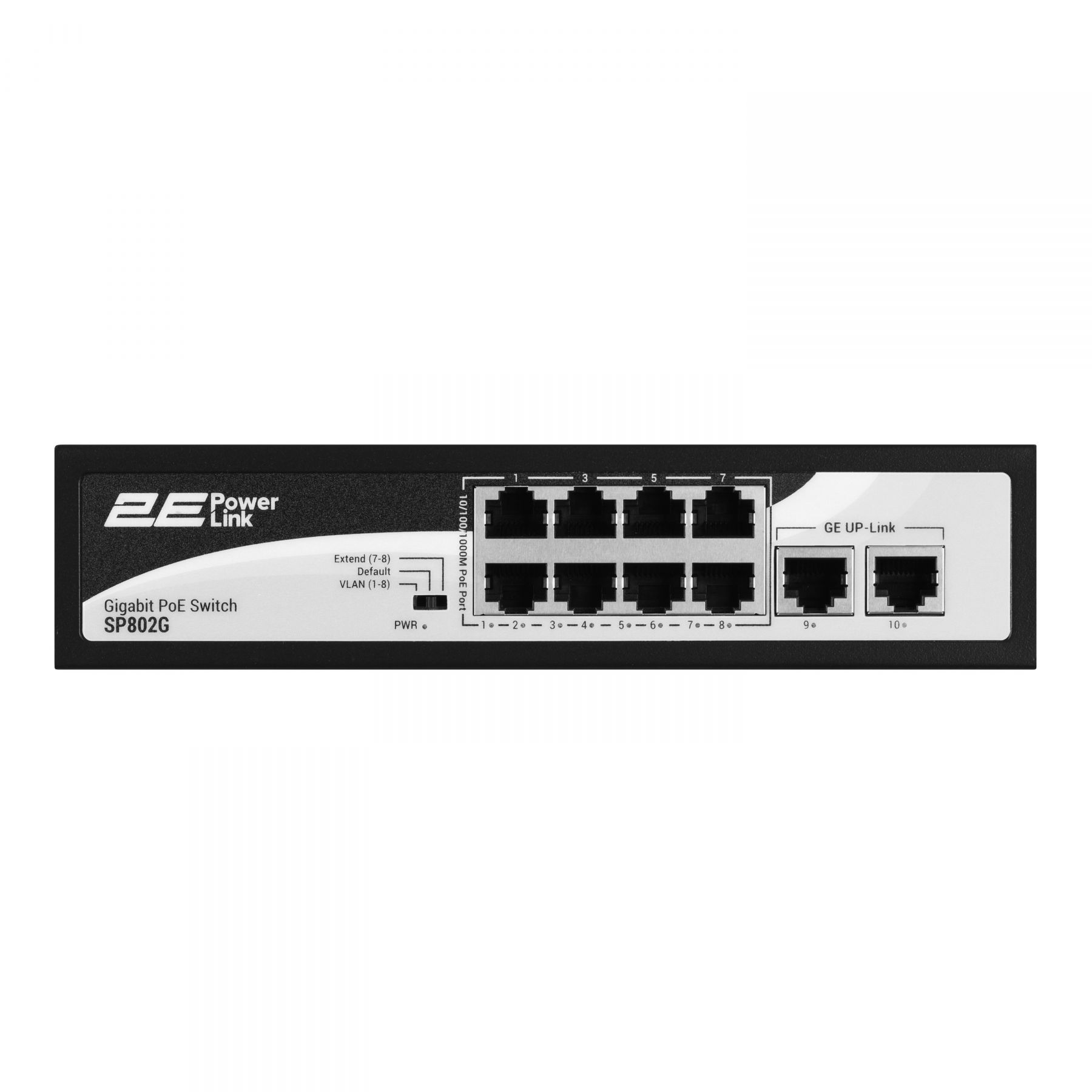 Комутатор 2E PowerLink SP802G 10xGE (8xPoE, 2xUplink), 120Вт, Некерований