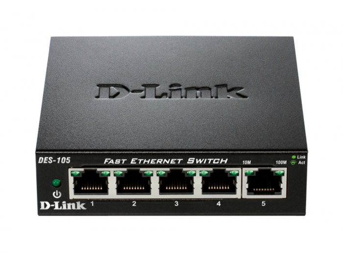 Комутатор D-Link DES-105/E 5xFE, Некерований, Метал
