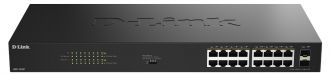 Комутатор D-Link DGS-1018P 16x1GE PoE+, 240Вт, 30Вт/порт, Некерований