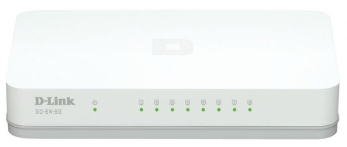 Некерований комутатор із 8 мідними портами Gigabit Ethernet 10/100 / 1000 Мбіт/с пластиковий корпус. 8-портовий гігабітний простий некерований настільний комутатор D-Link GO-SW-8G оснащений вісьмома гігабітними портами для простого розширення мережі та швидкого переходу до гігабітного зв'язку. Підключайте до восьми пристроїв для блискавичної передачі файлів та надплавної потокової передачі мультимедіа. Настільний комутатор є частиною нової серії пристроїв SOHO від D-Link, в яких використовується екологічна технологія D-Link, що забезпечує економію енергії, зниження нагріву та триваліший термін служби продукту без шкоди для продуктивності чи функціональності.