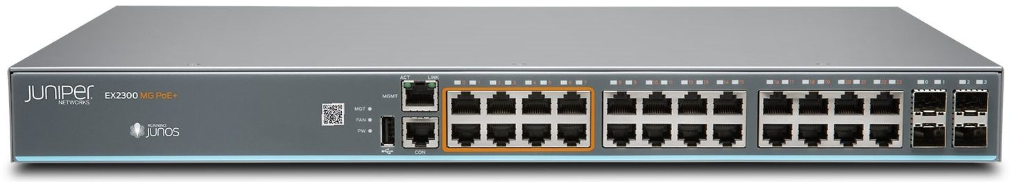 Мультигігабітний Ethernet-комутатор EX2300 є компактним рішенням із високою щільністю розміщення (1 RU) для невеликих мережевих середовищ з обмеженнями за площею, потужністю та бюджетом. Мультигігабітні порти доступу (1/2,5 Гбіт/с) забезпечують продуктивність і потужність для дротових пристроїв, що робить їх ідеальними платформами для оновлення рівня доступу або розгортання нових мереж.
